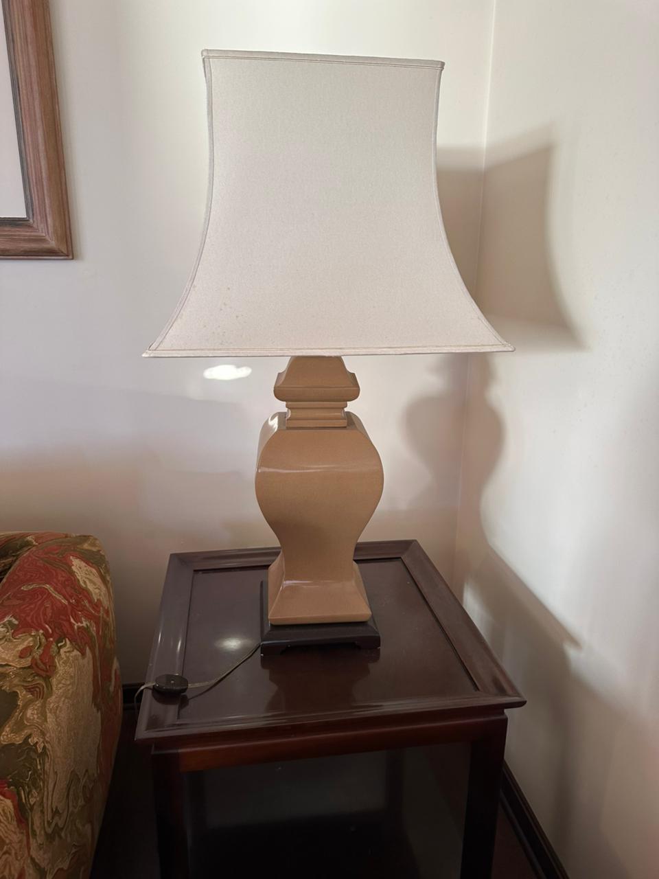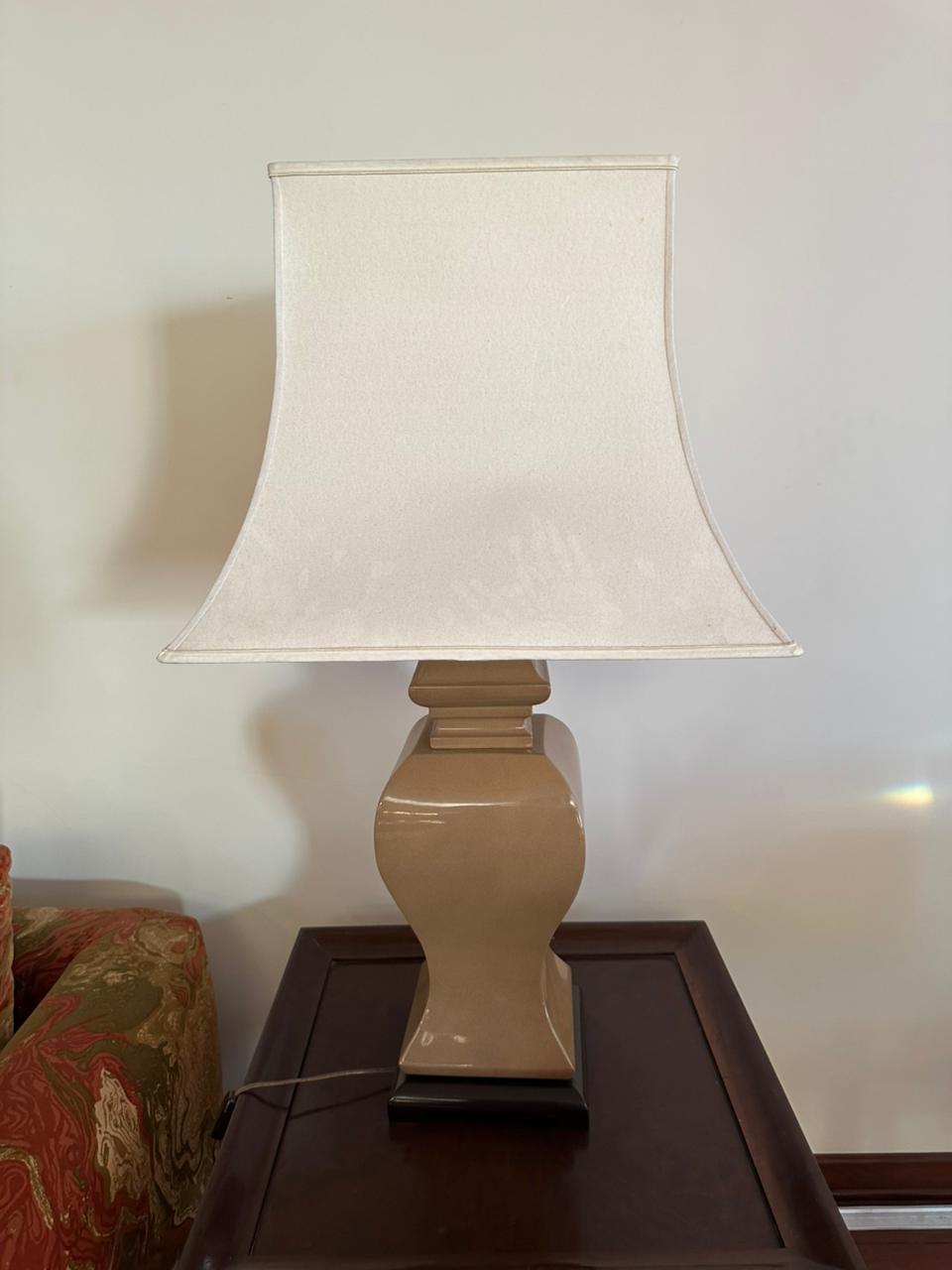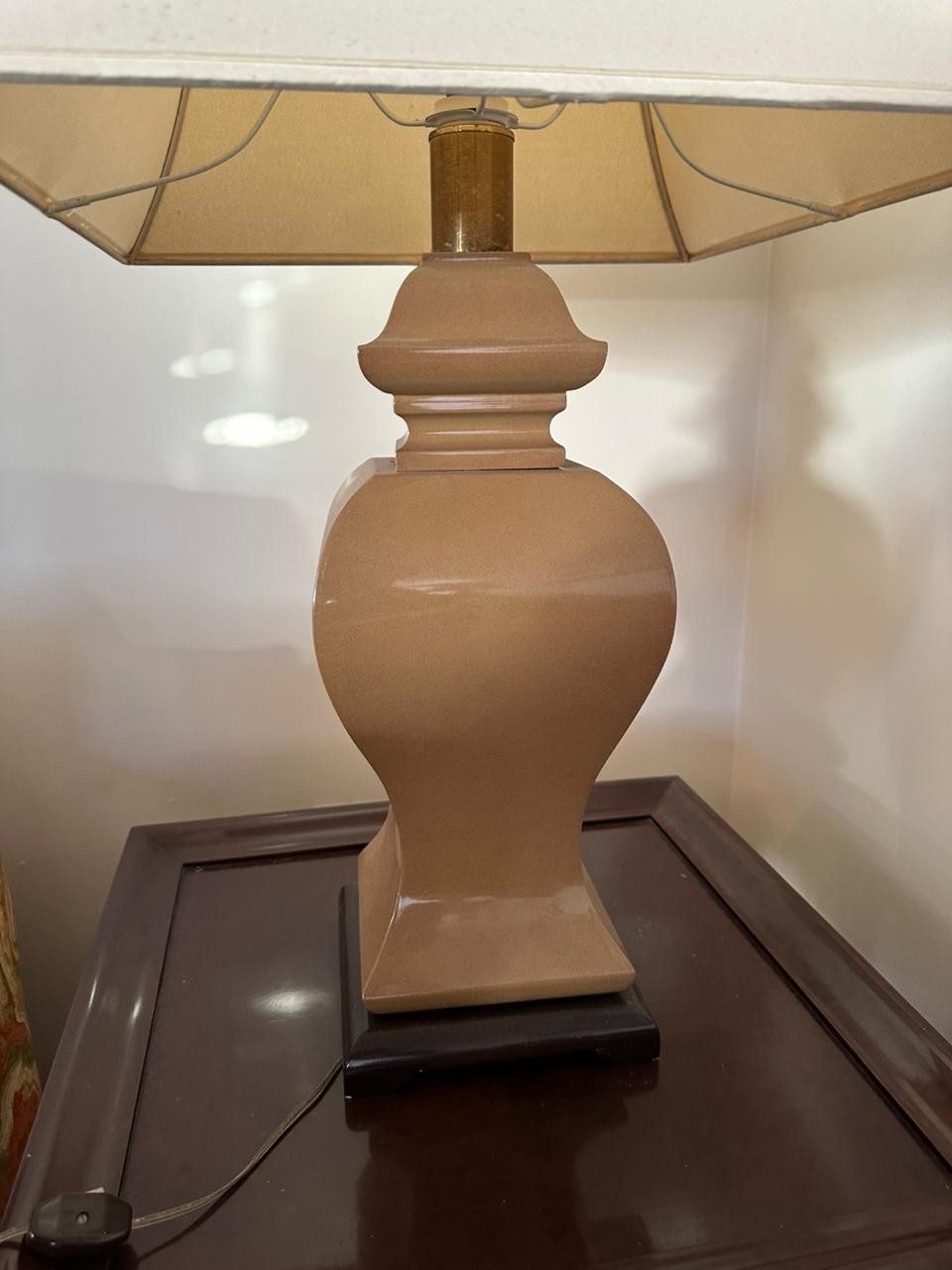 2 ABAJURES — GRANDES E IMPONENTES — CÚPULAS COM BASE QUADRADA — COR NUDE — PARECE UMA RESINA, NÃO CONSEGUIMOS IDENTIFICAR — ANOS 1980 — TODINHO ORIGINAL — Valor por peça — M135.54