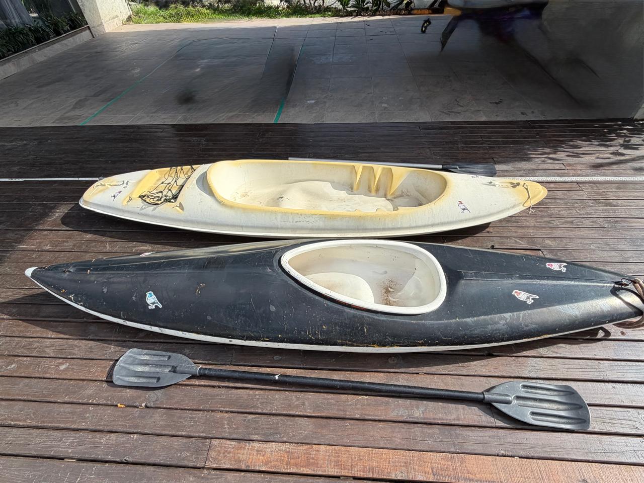 2 CAIAQUES DE LAZER – INDIVIDUAL FECHADO E DUPLO ABERTO – UM REMO DUPLO PARA CADA CAIAQUE – Valor diferente para venda do par — J060.102