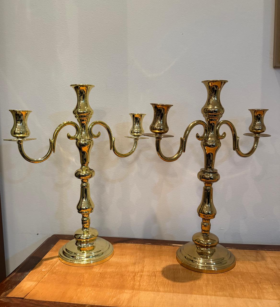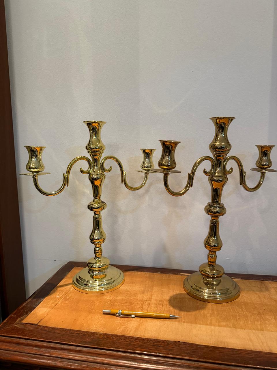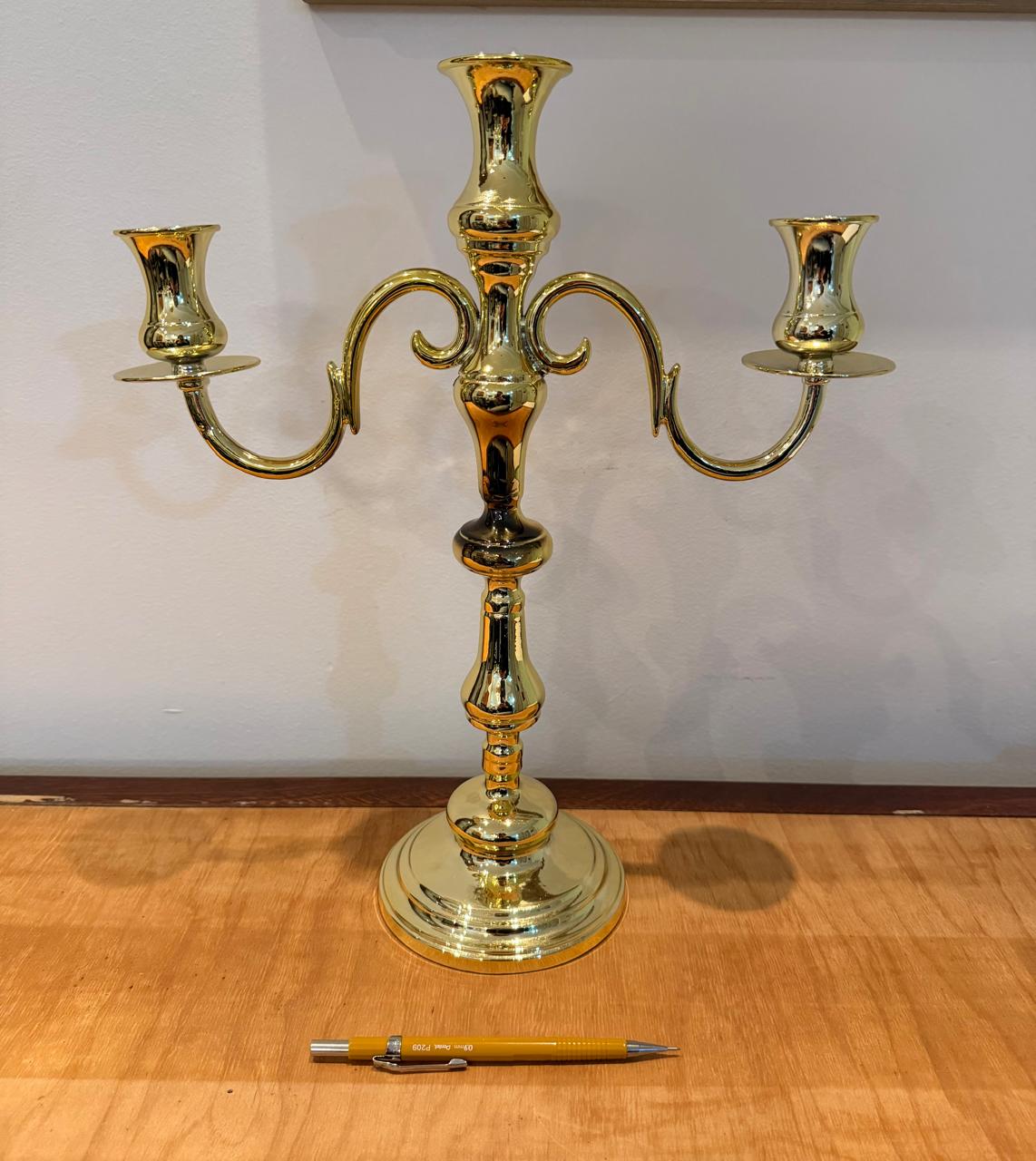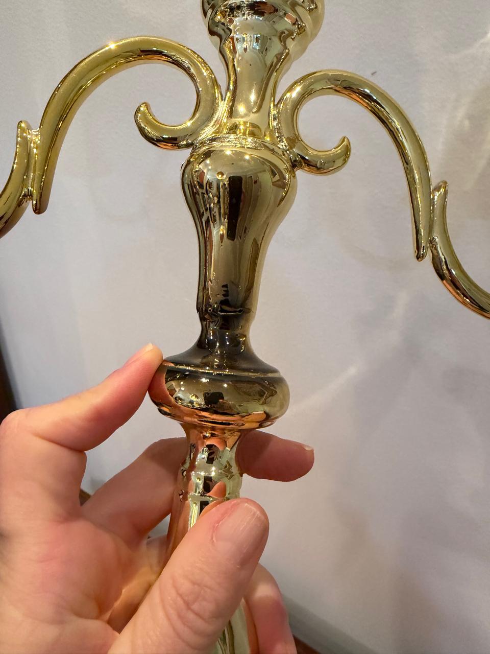 2 CASTIÇAIS – METAL DOURADO – 2 PEÇAS IGUAIS NO FORMATO E DIFERENTES TONS NA PINTURA – Valor por peça — J066.09
