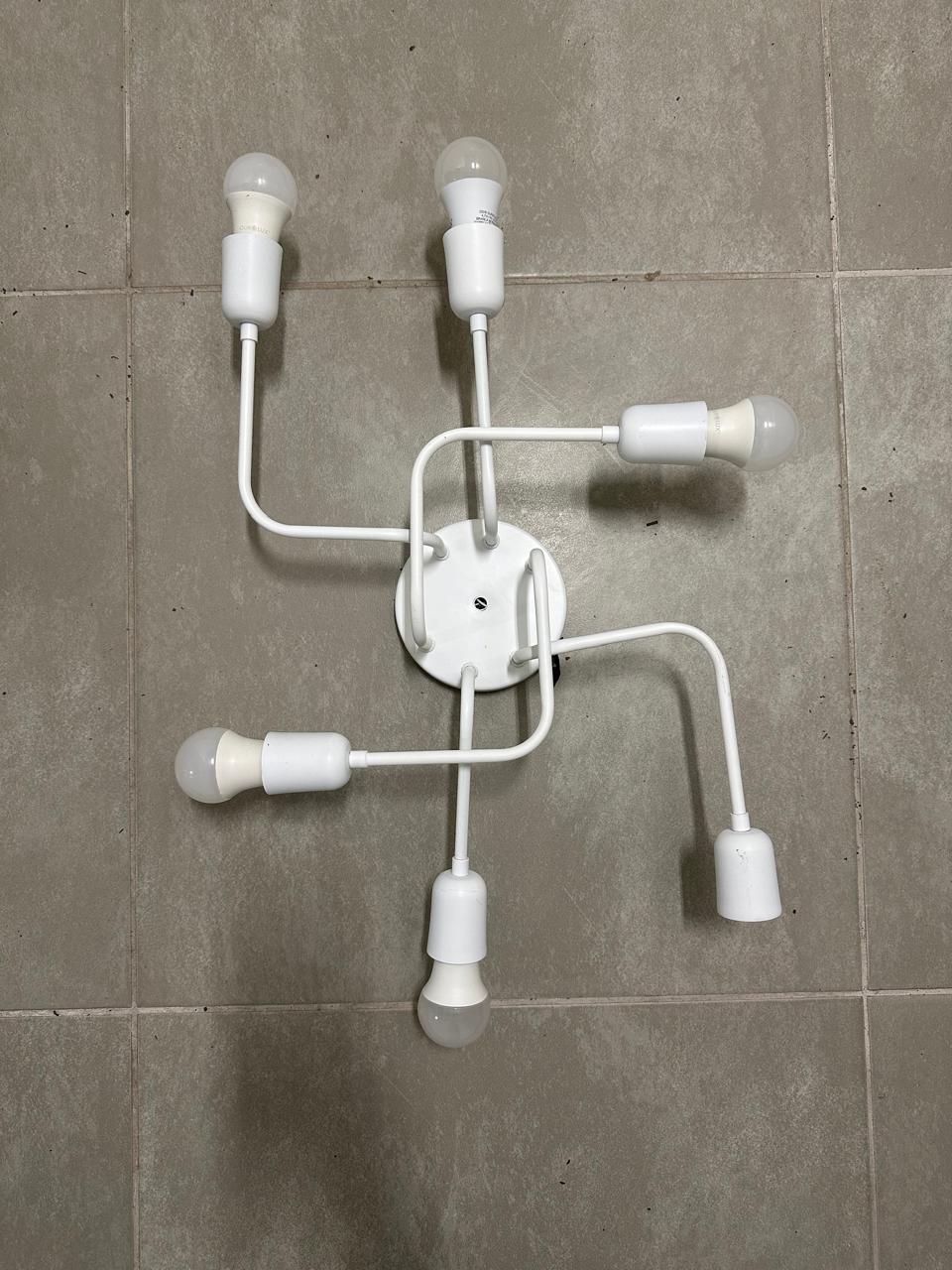 2 LUMINÁRIAS DE TETO – 6 BRAÇOS – ESTRUTURA METAL COR BRANCA FOSCA – PARA 6 LÂMPADAS – TEMOS 2 PEÇAS IGUAIS – JÁ DESINSTALADAS — G030.305