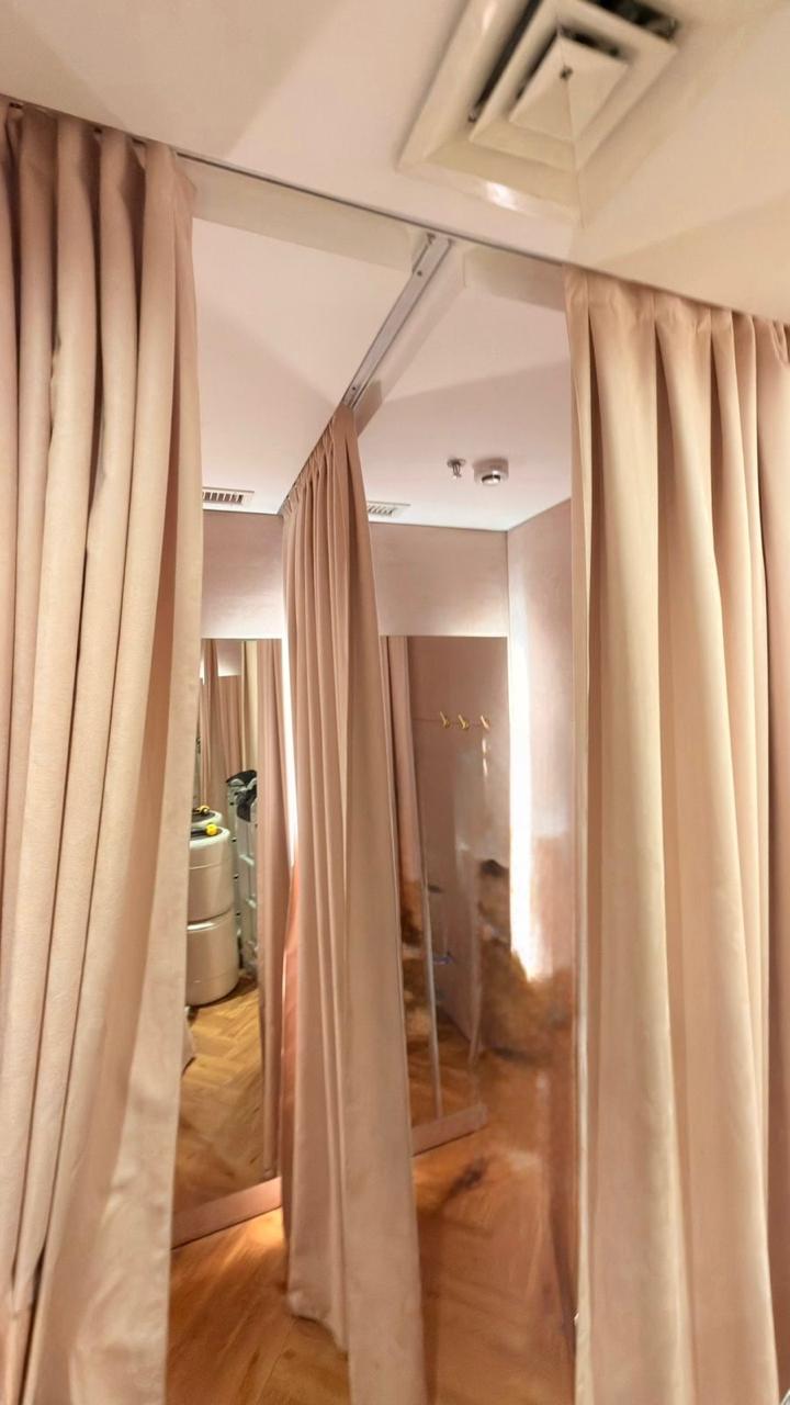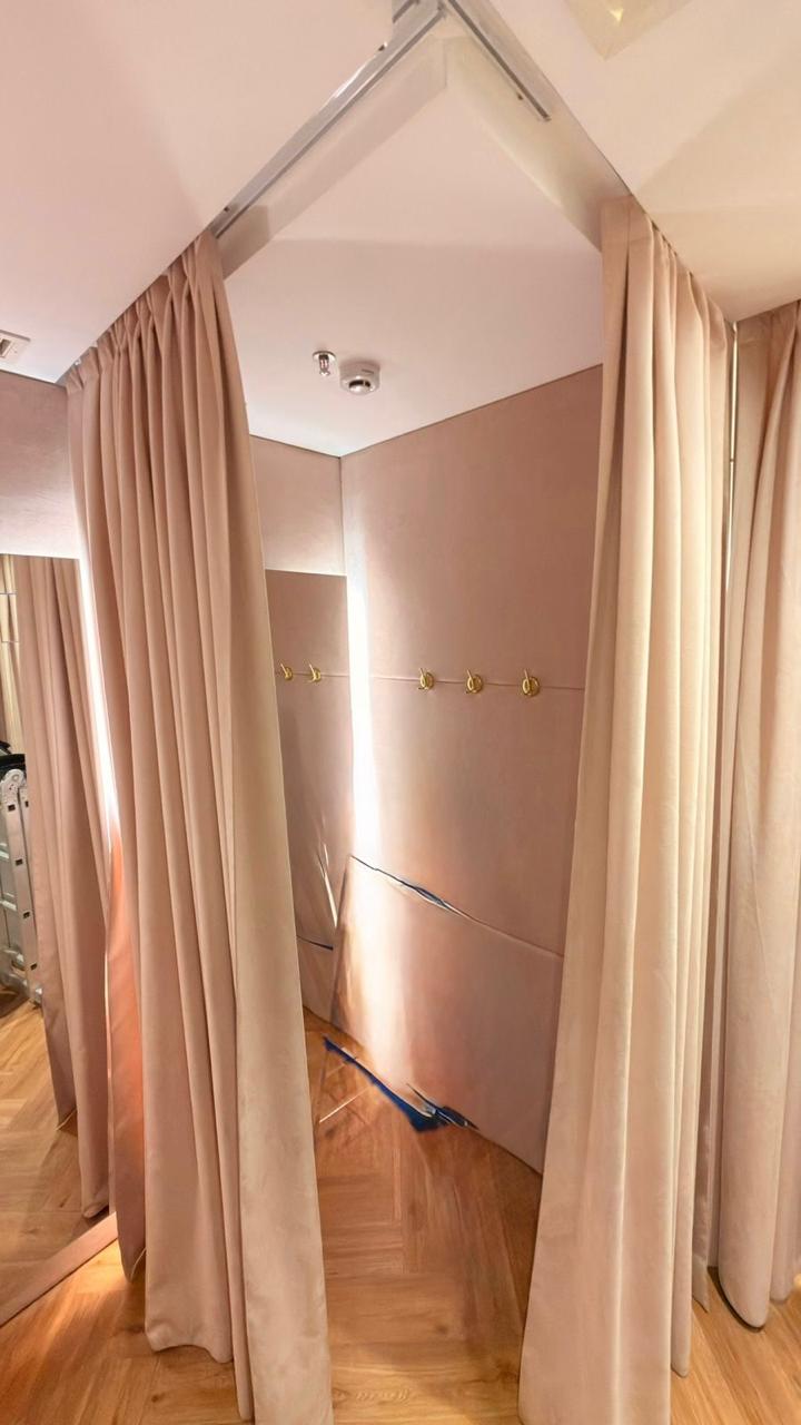3 CORTINAS – FORRAÇÃO DUPLA – SUEDE ROSA CLARO – PARECE CAMURÇA – ACOMPANHA TRILHO SUIÇO – Valor por peça — F060.114