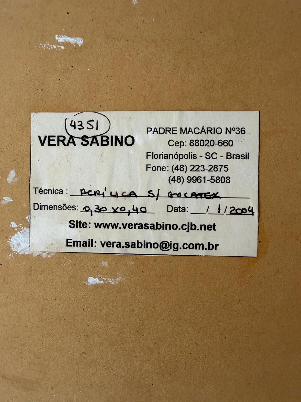 Vera Sabino é artista plástica catarinense que dispensa apresentações. Tratada como amiga por todos que conhecem suas obras, de tanta intimidade que ganhamos com elas. Vera desenvolveu uma técnica bastante minimalista de pintura de tinta acrílica em eucatex. Antes das pinceladas, ela faz questão de desenhar cada minúcia em suas obras em criação. A temática de seus quadros sempre foi voltada para as histórias que ouviu quando criança: “as bruxas de Cascaes, as histórias da ilha, os santos, as igrejas, as flores e as figuras femininas”.