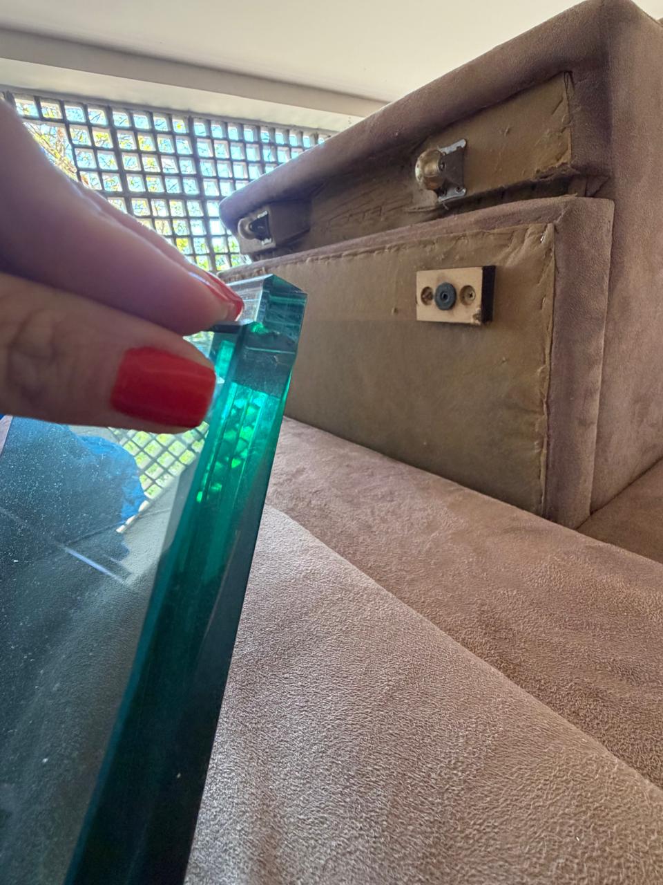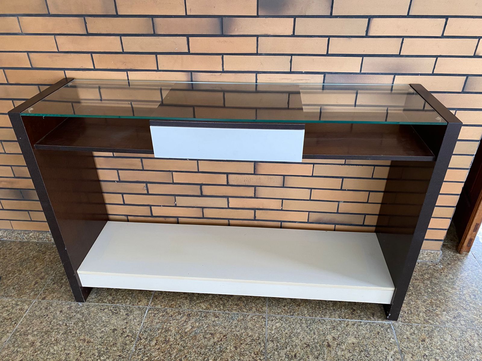 APARADOR EM MDF – DETALHE GAVETA CENTRAL BRANCA – TAMPO VIDRO 10MM — C096.03