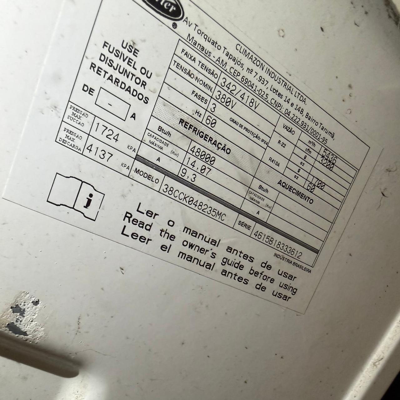 Seja o primeiro a avaliar “AR CONDICIONADO PISO-TETO – CARRIER – FRIO — C092.02” Cancelar resposta