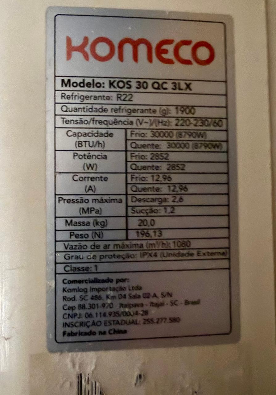 AR CONDICIONADO SPLIT – KOMECO – 30 MIL BTUs – QUENTE E FRIO — C092.01
