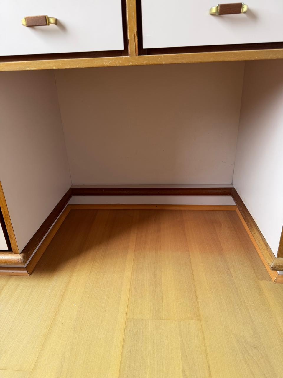É antigo, foi feito sob medida para o espaço, nunca foi desmontado