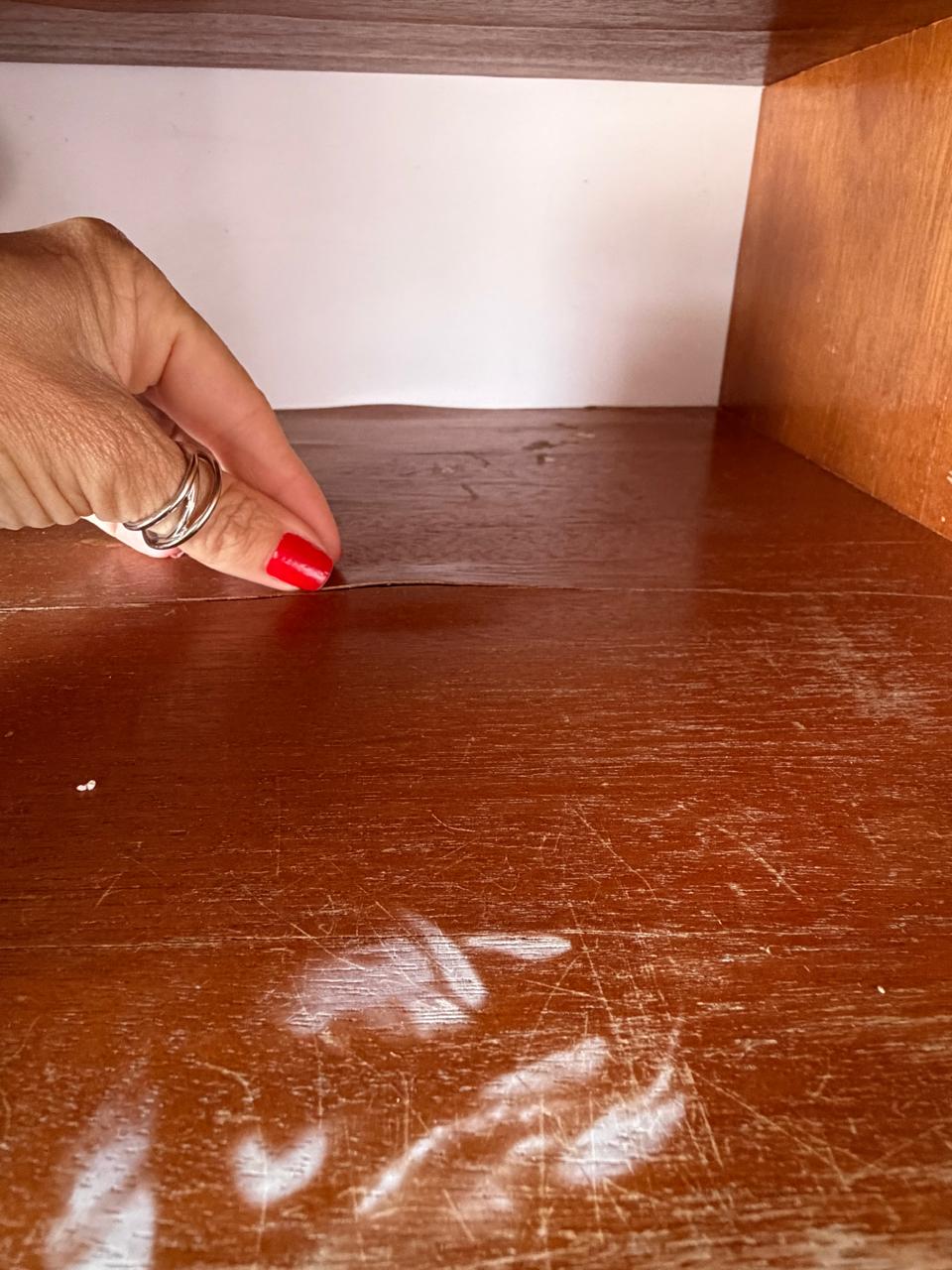 Parte externa só pequenos detalhes onde tem lâmina madeira mais exposta ao tempo e uso