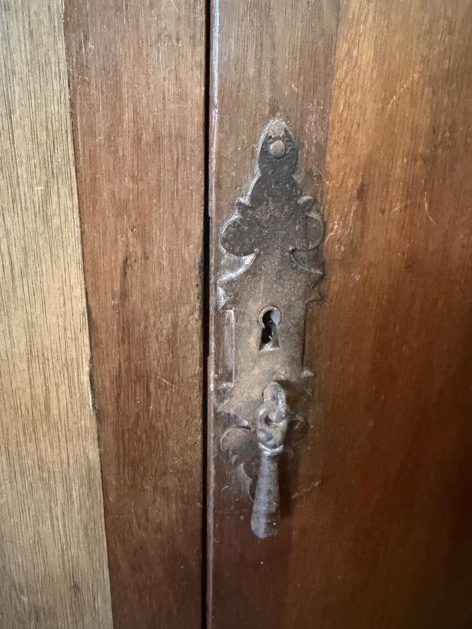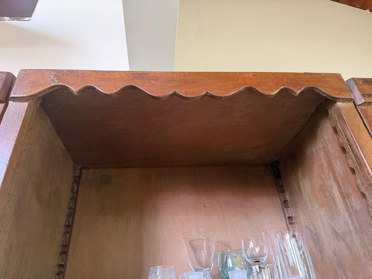 ARMÁRIO TRIPARTIDO – MADEIRA + LÂMINA – PEÇA ANTIGA – VINDA DO RIO DE JANEIRO – PRATELEIRAS MÓVEIS – PORTA LEVADIÇA NO CENTRO — R093.21