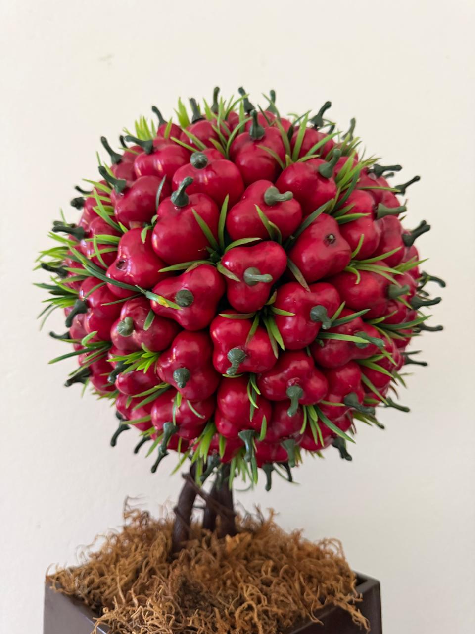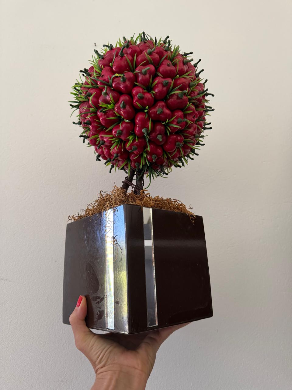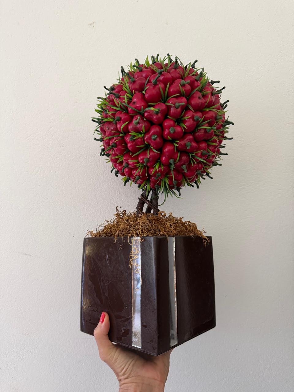 ARRANJO DCORATIVO SIMPLES – MINI ÁRVORE ARTIFICIAL – FRUTINHAS VERMELHAS — S086.55