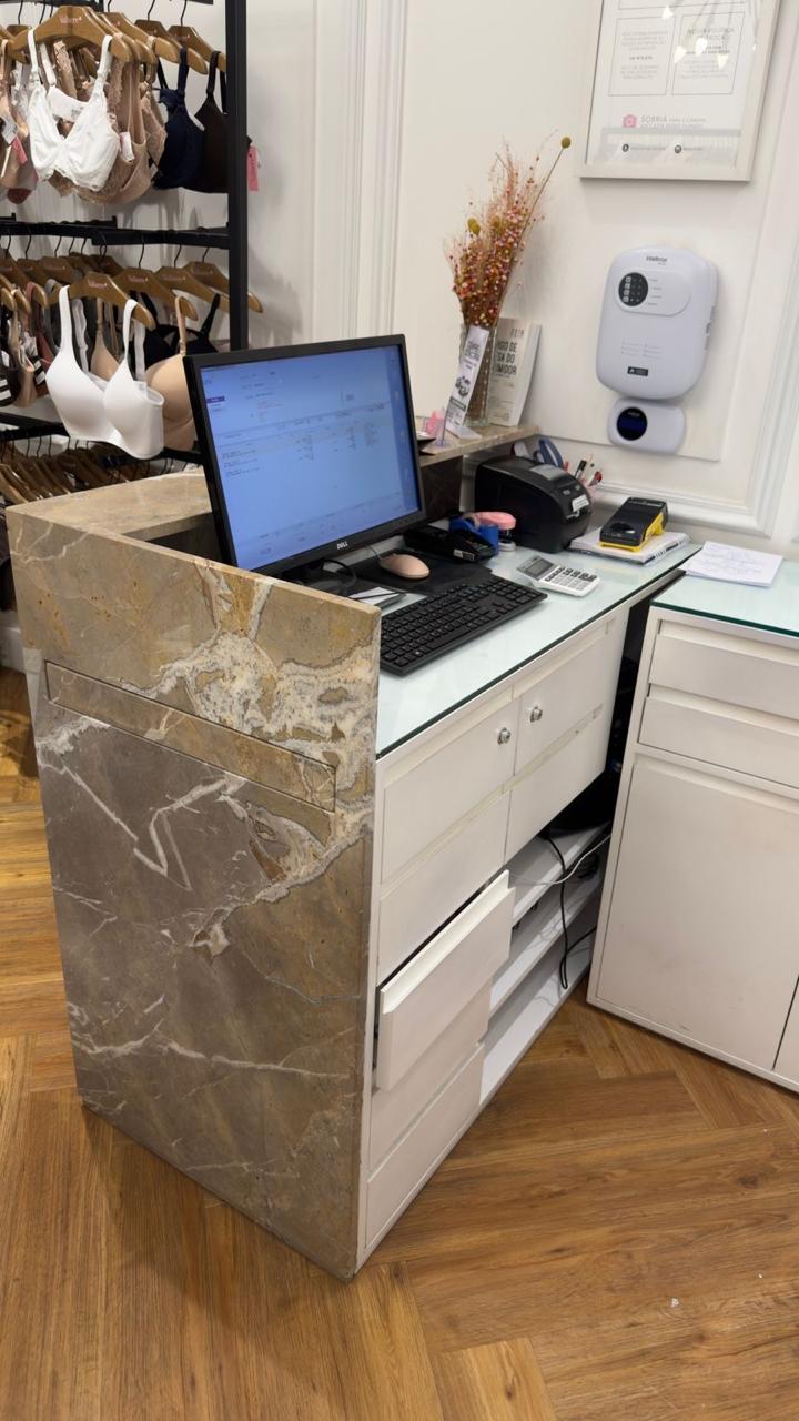 Seja o primeiro a avaliar “BALCÃO CAIXA EM L – MDF NA PARTE INTERNA COM GAVETAS, BANCADA E NICHOS – PEDRA ITALIANA — F060.109” Cancelar resposta