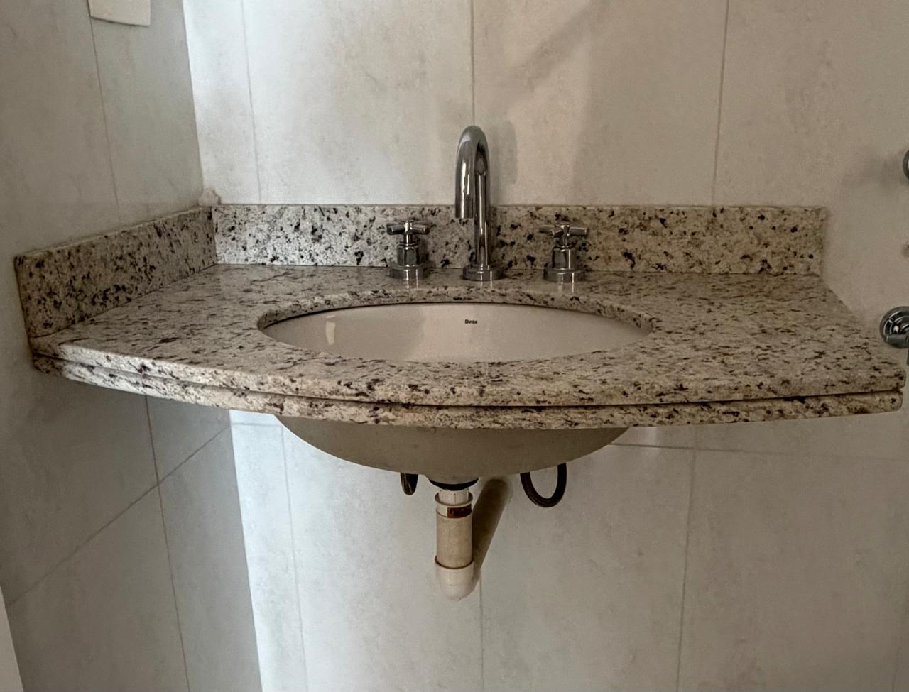 BANCADA COM CUBA DECA BRANCA – RODAPIA – GRANITO – TORNEIRA E MISTURADORES — C095.07