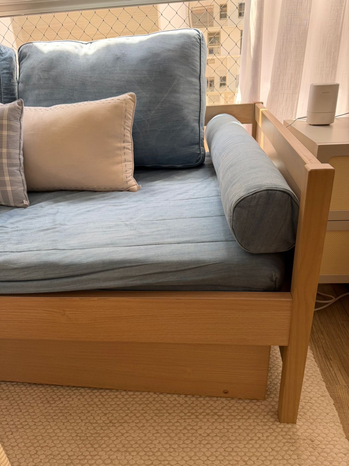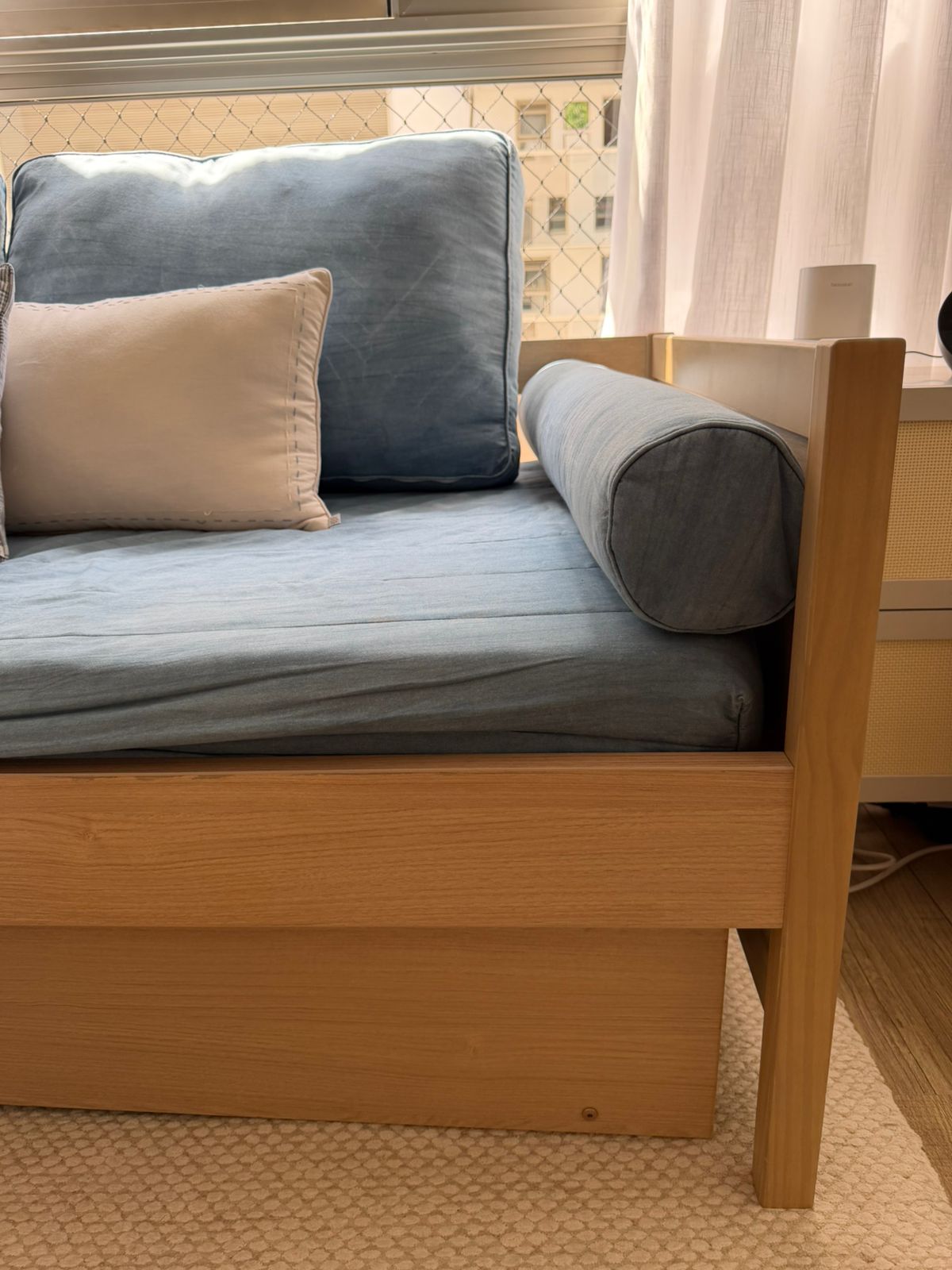 A cama auxiliar desliza facilmente por meio de 4 rodízios, sendo ideal para receber visitas ou otimizar o espaço no dia a dia.