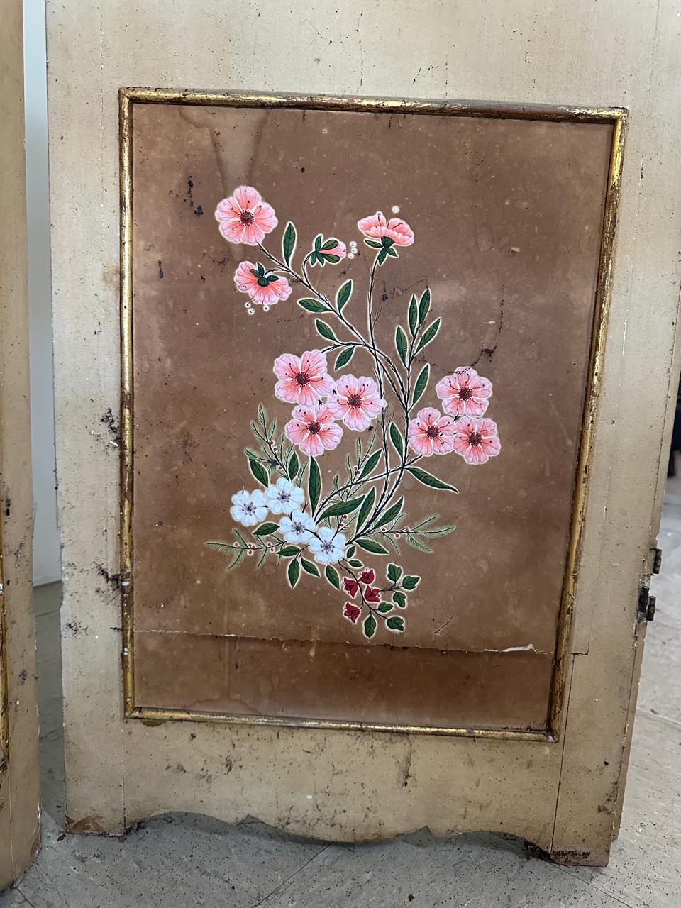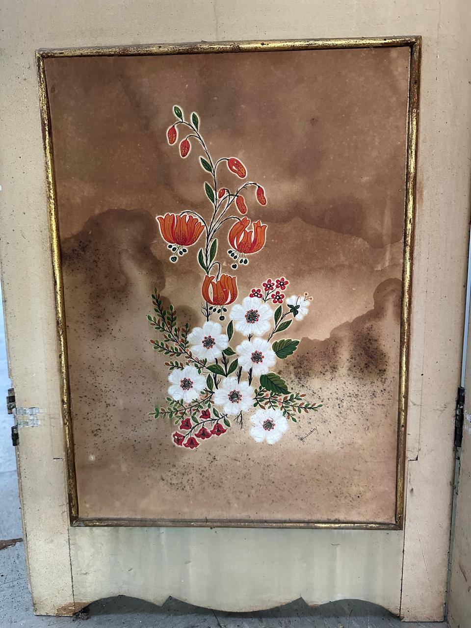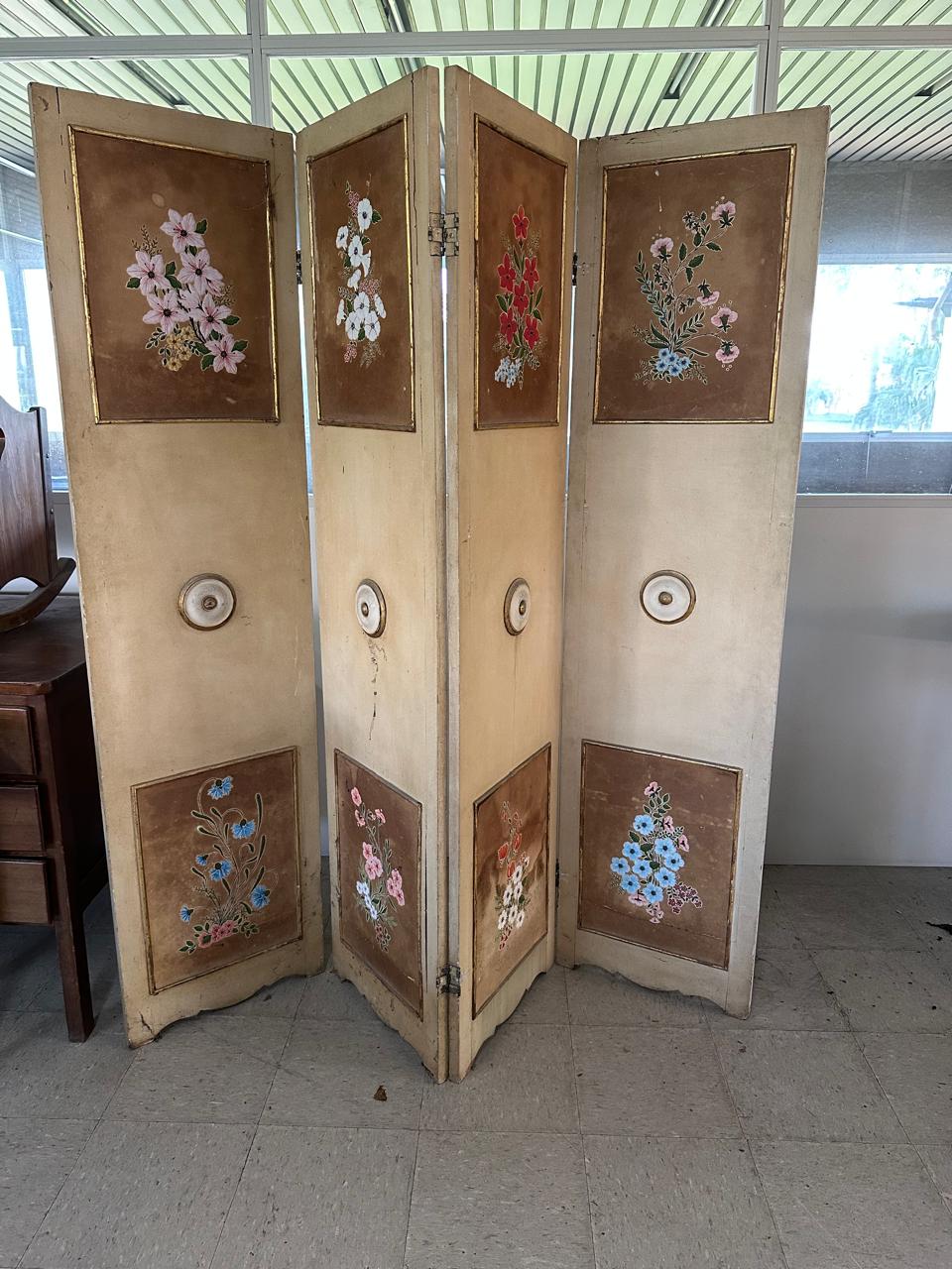 BIOMBO CHEIO DE HISTÓRIA PRA CONTAR… – PEÇA CENTENÁRIA – DESENHOS PINTADOS À MÃO – MADEIRA JÁ COM CUPIM — L085.226