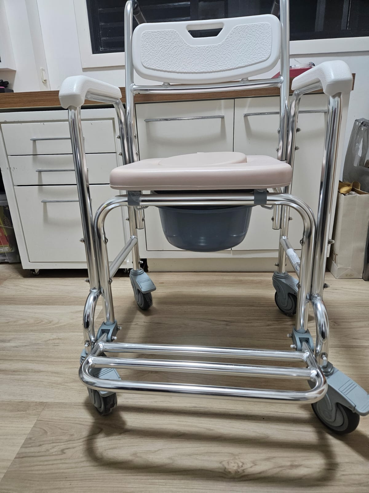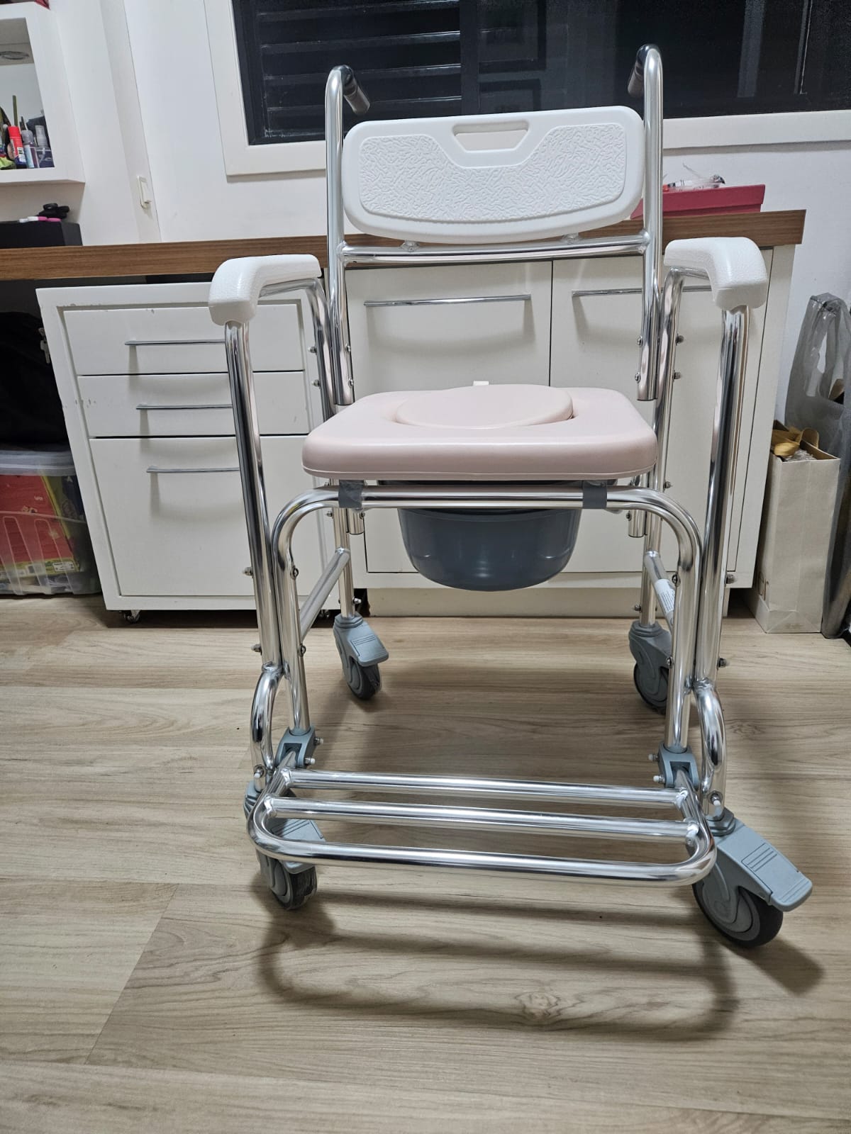 CADEIRA MOBIL PARA BANHEIRO – COM RODÍZIO NOS 4 PÉS – NOVA, USADA UM MÊS — S082.24