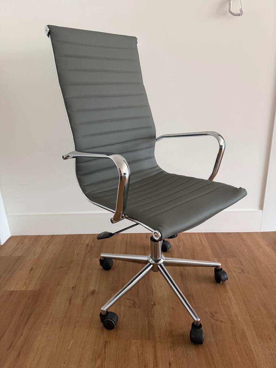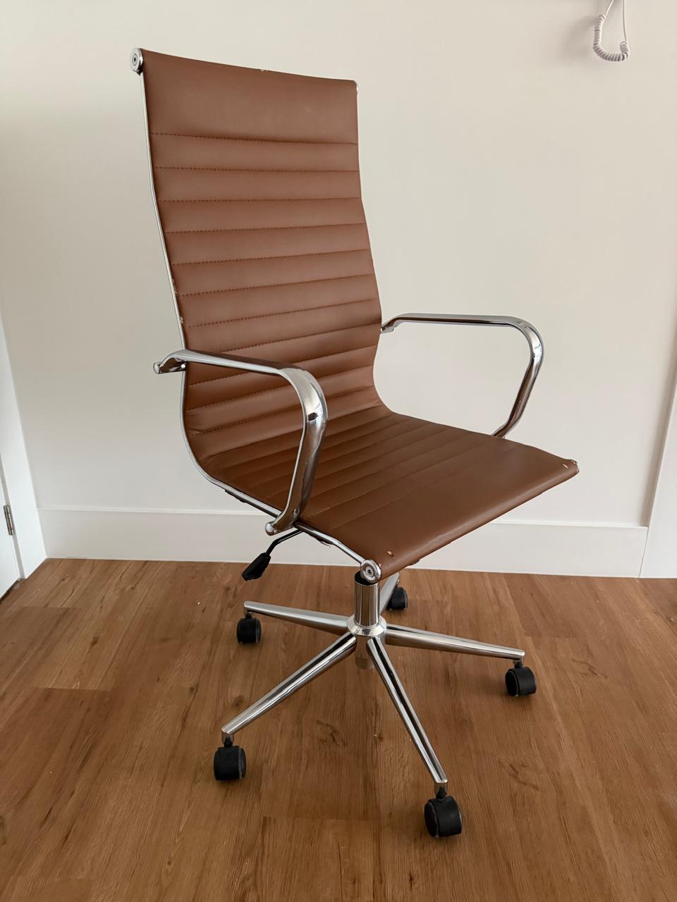 CADEIRAS GIRATÓRIAS – ESCRITÓRIO – CORVIN – CROMADA – COM BRAÇO – UMA CINZA E UMA CARAMELO – Preço por cada peça — A111.600
