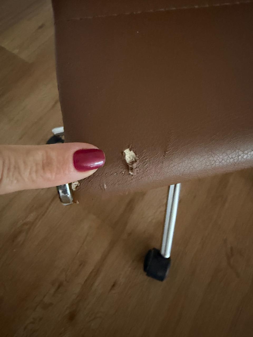 Uma na cor caramelo – com pequeno descascado no corvin, destaque na foto