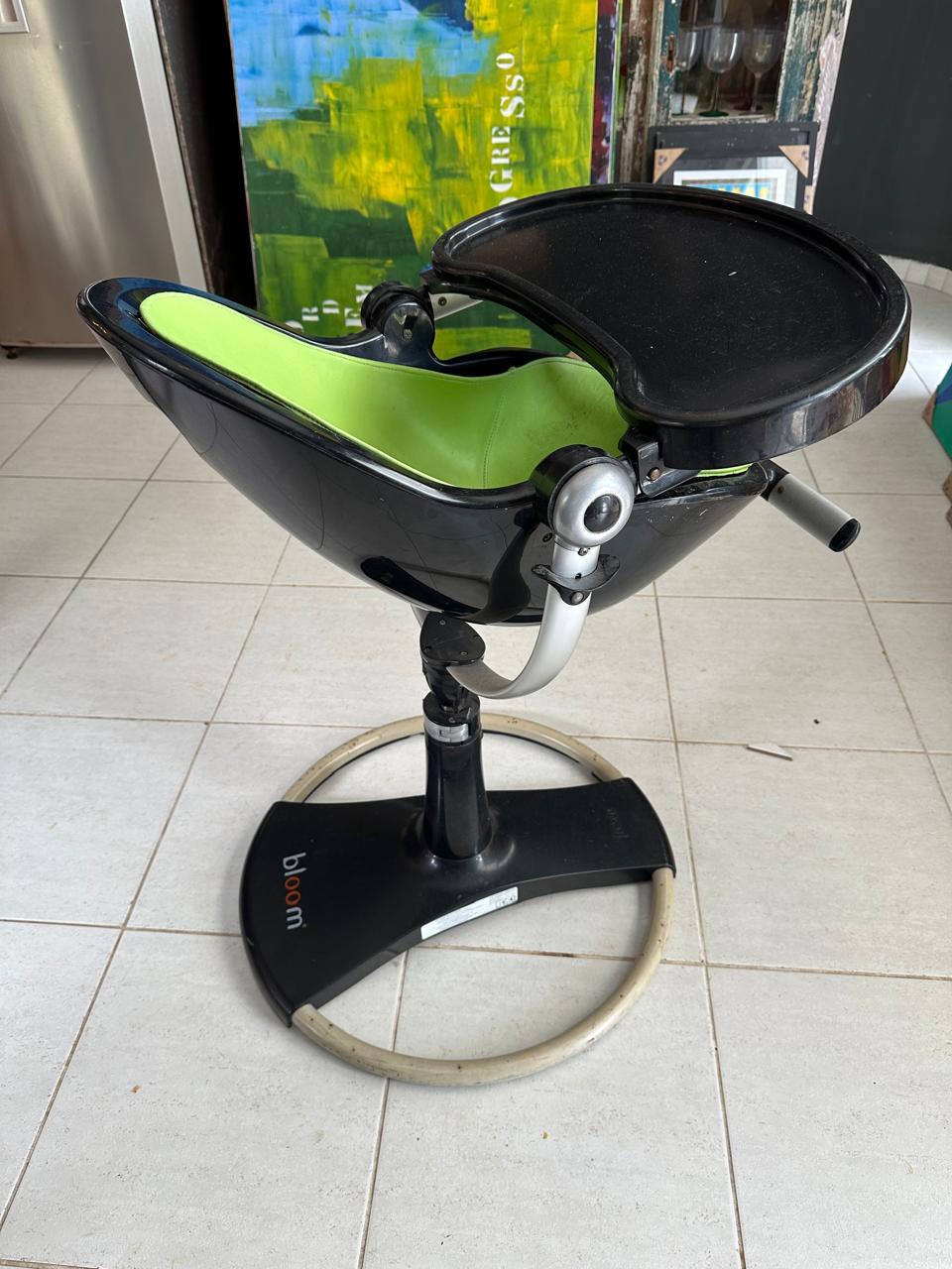 CADEIRINHA DE ALIMENTAÇÃO – BLOOM – FRESCO – BEBÊ CONFORTO COM DUAS POSIÇÕES – BASE ROBUSTA – PRETA E VERDE – MARCAS DO TEMPO — F067.33