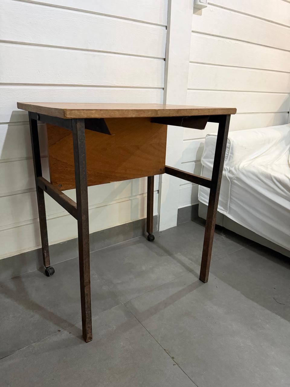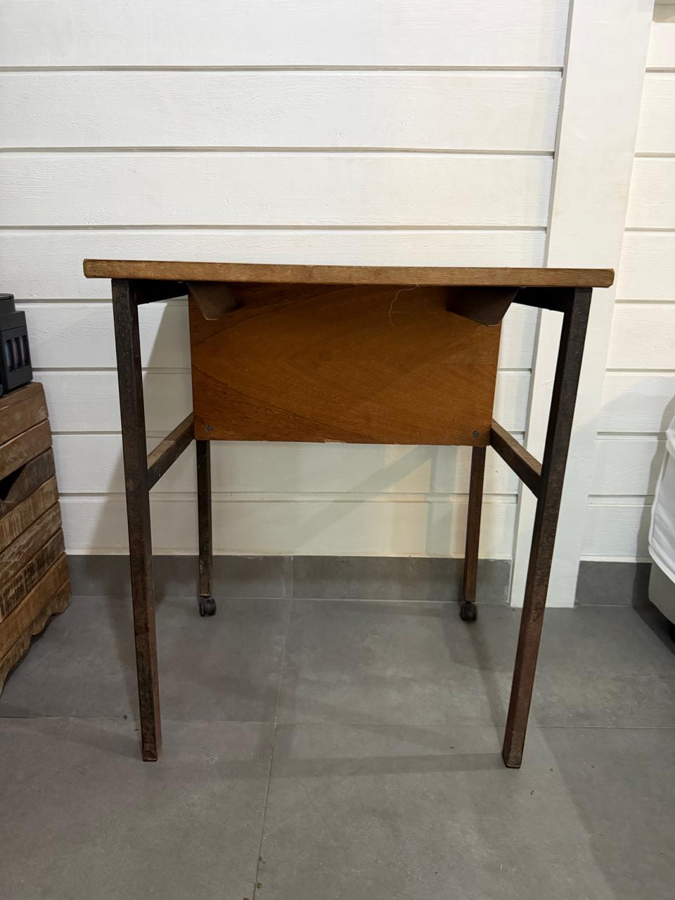 CARTEIRA ESCOLAR – USADA COMO MESINHA DE APOIO – MADEIRA + RODÍZIO — A134.09