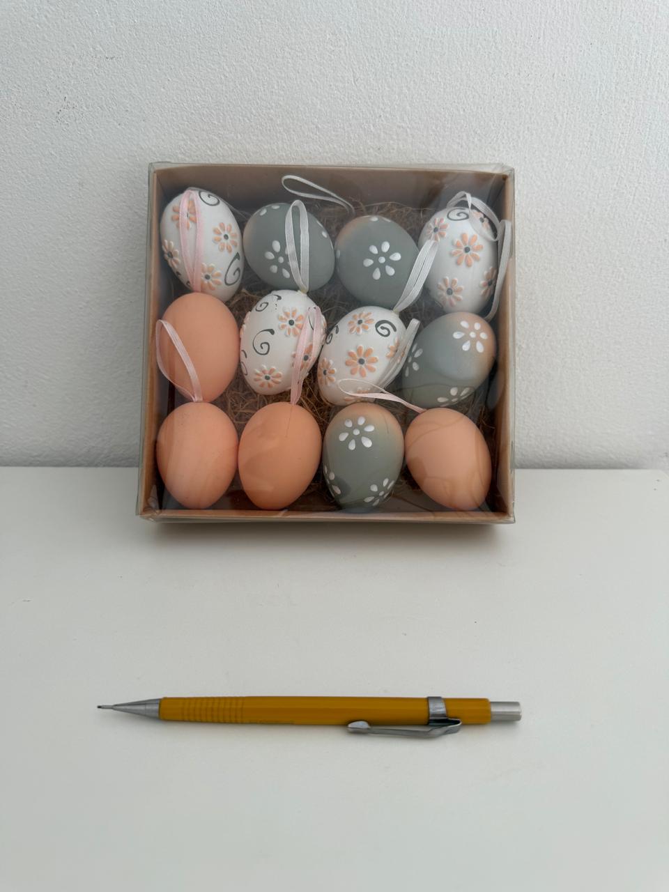 COELHINHO DA PÁSCOA, QUE TRAZES PRA MIM ? UM OVO, DOIS OVOS… CONJUNTO DE 9 OVINHOS PLÁSTICOS DECORATIVOS — S086.73
