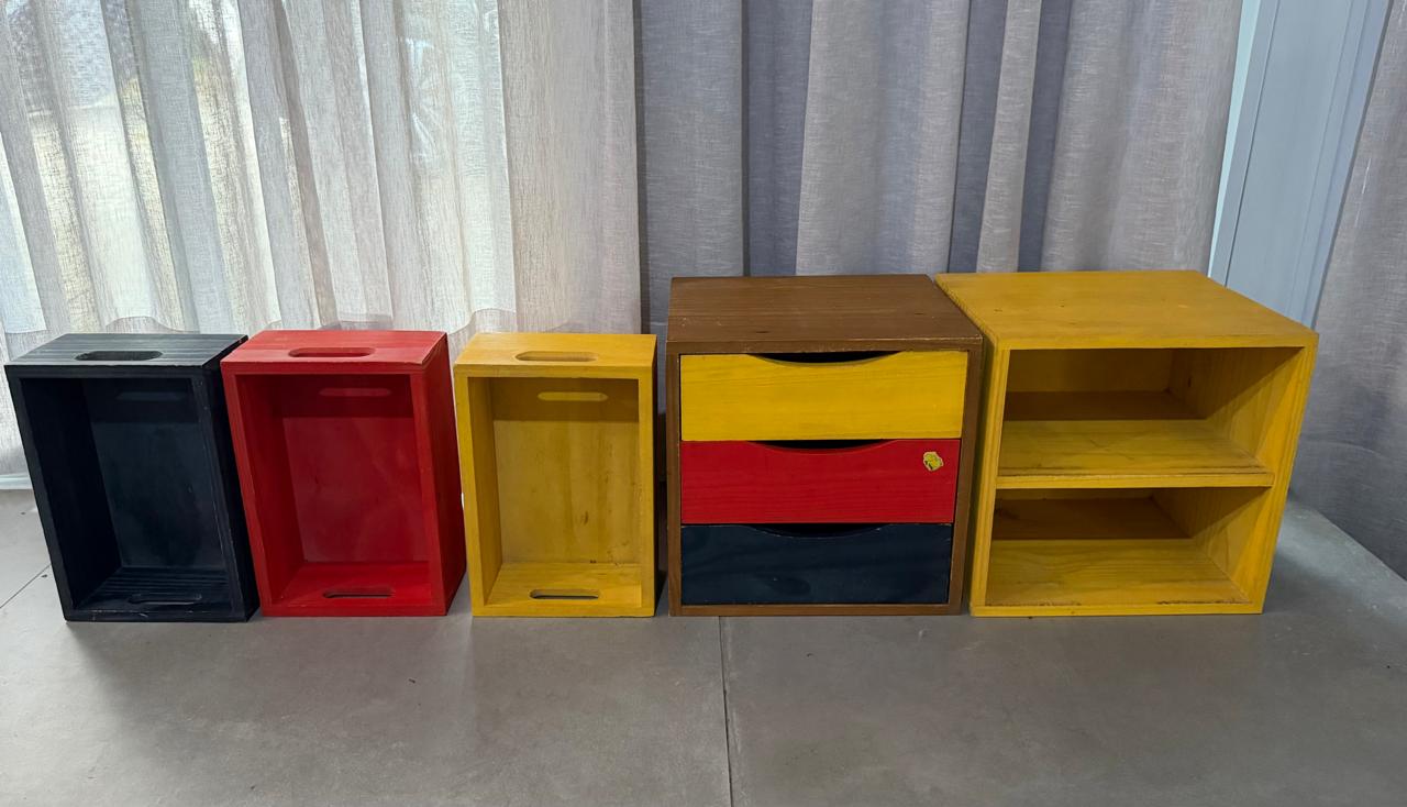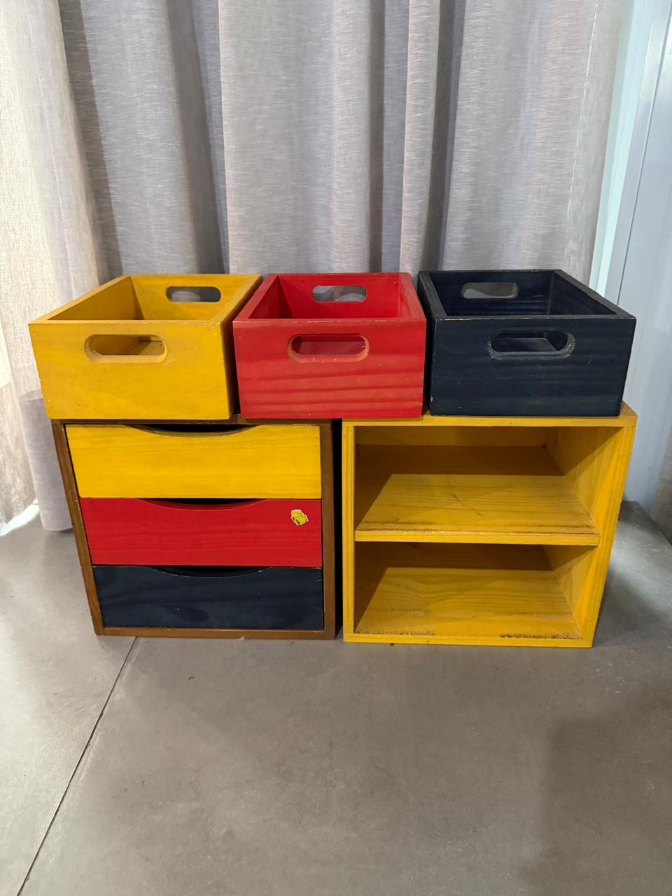 Seja o primeiro a avaliar “COMBO COLORIDO ! 3 MINI CAIXOTES + 1 MINI GAVETEIRO + 1 MINI ESTANTE – MADEIRA PINUS PINTADO + 9 HALTERES EMBORRACHADOS — A134.36” Cancelar resposta