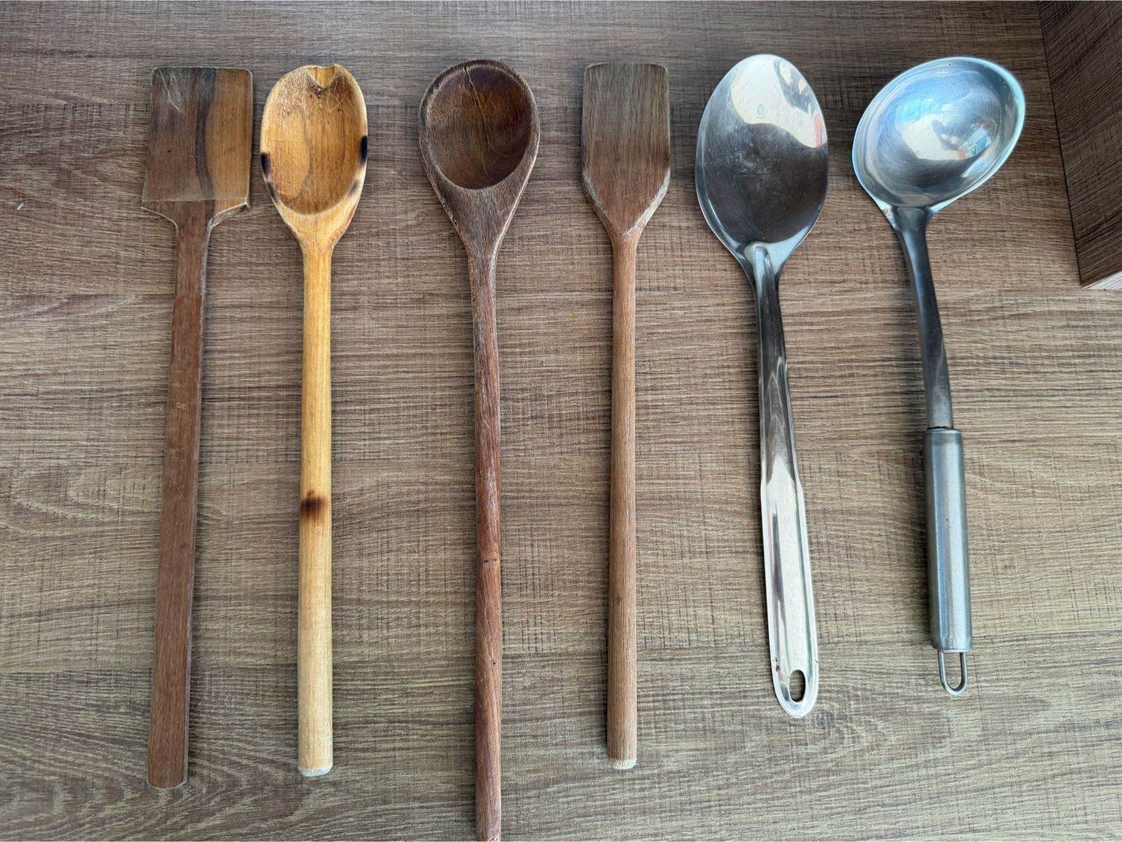 04 Colheres de pau (1 com pequeno nicado)