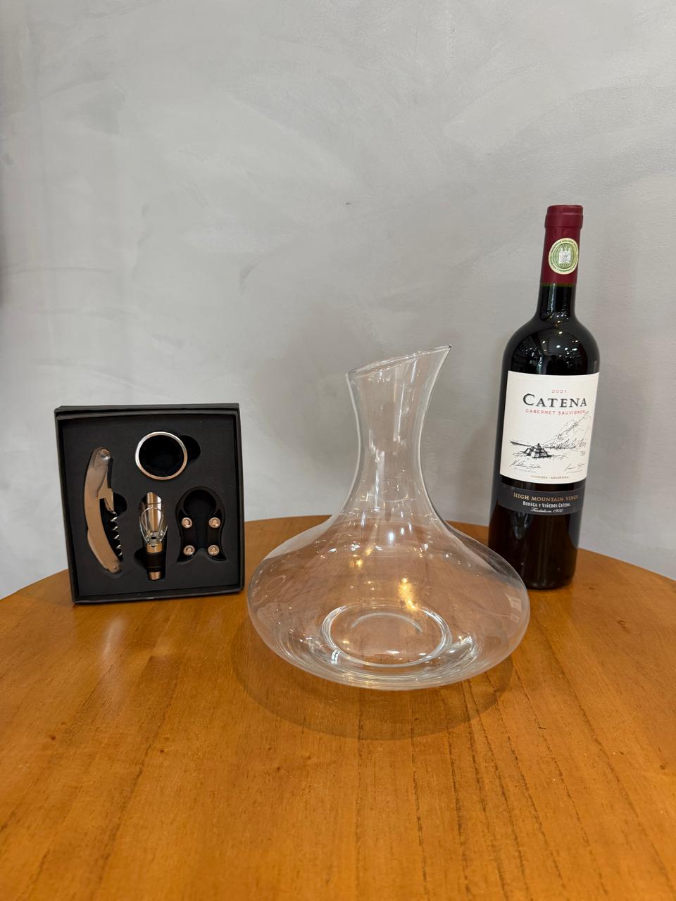 COMBO ENÓLOGO: 1 DECANTER VIDRO + KIT ABRIDOR + 1 GARRAFA DE VINHO CABERNET SAUVIGNON 2021 – CATENA – MENDOZA — R095.56