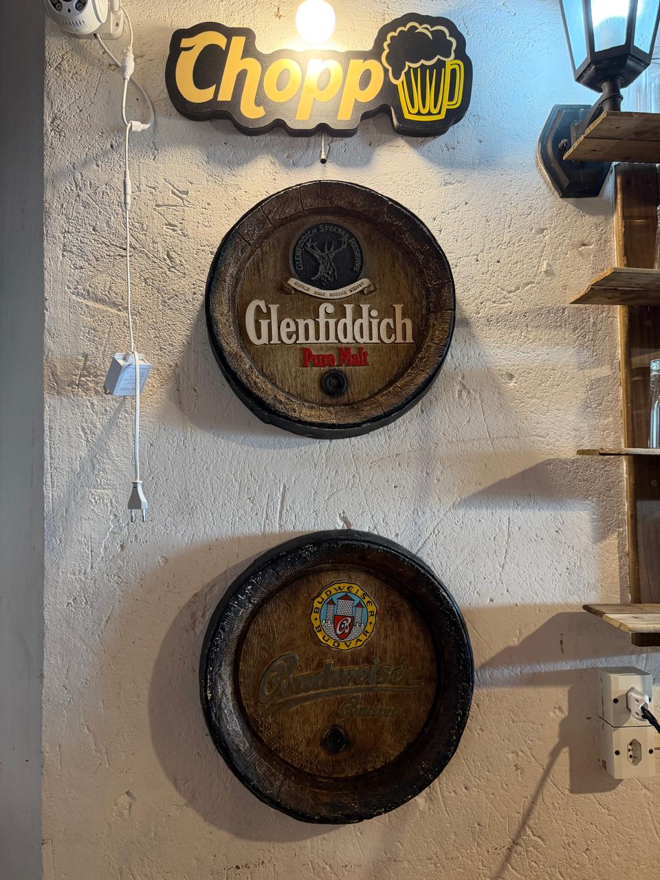 COMBO “ESSE BAR É MEU!” – 4 PEÇAS – 2 PLACAS DECORATIVAS REDONDAS EM FIBRA + 1 PLACA EM AGLOMERADO DE MADEIRA + 1 PLACA LUMINOSA CHOPP – Preço do combo — M071.14