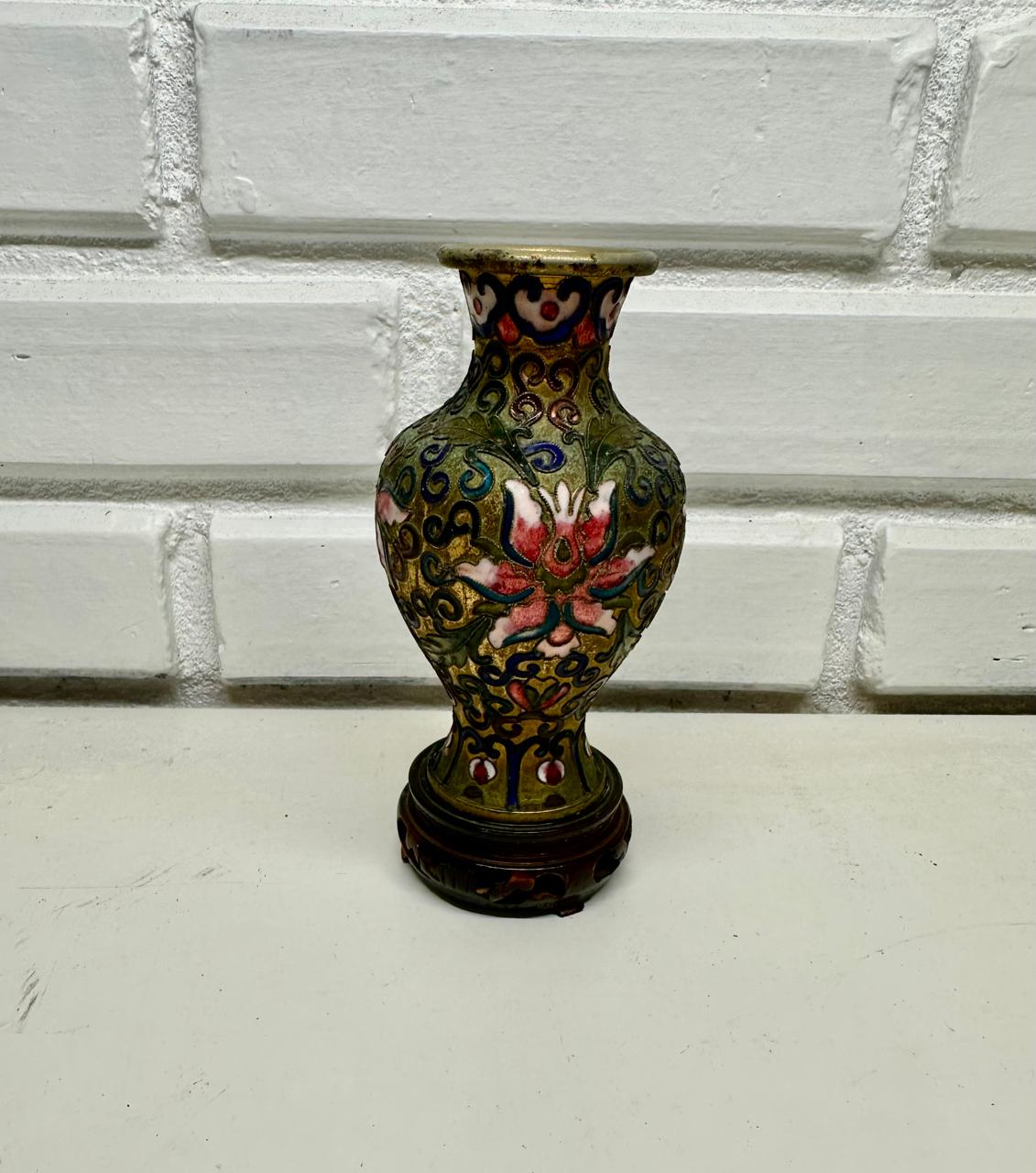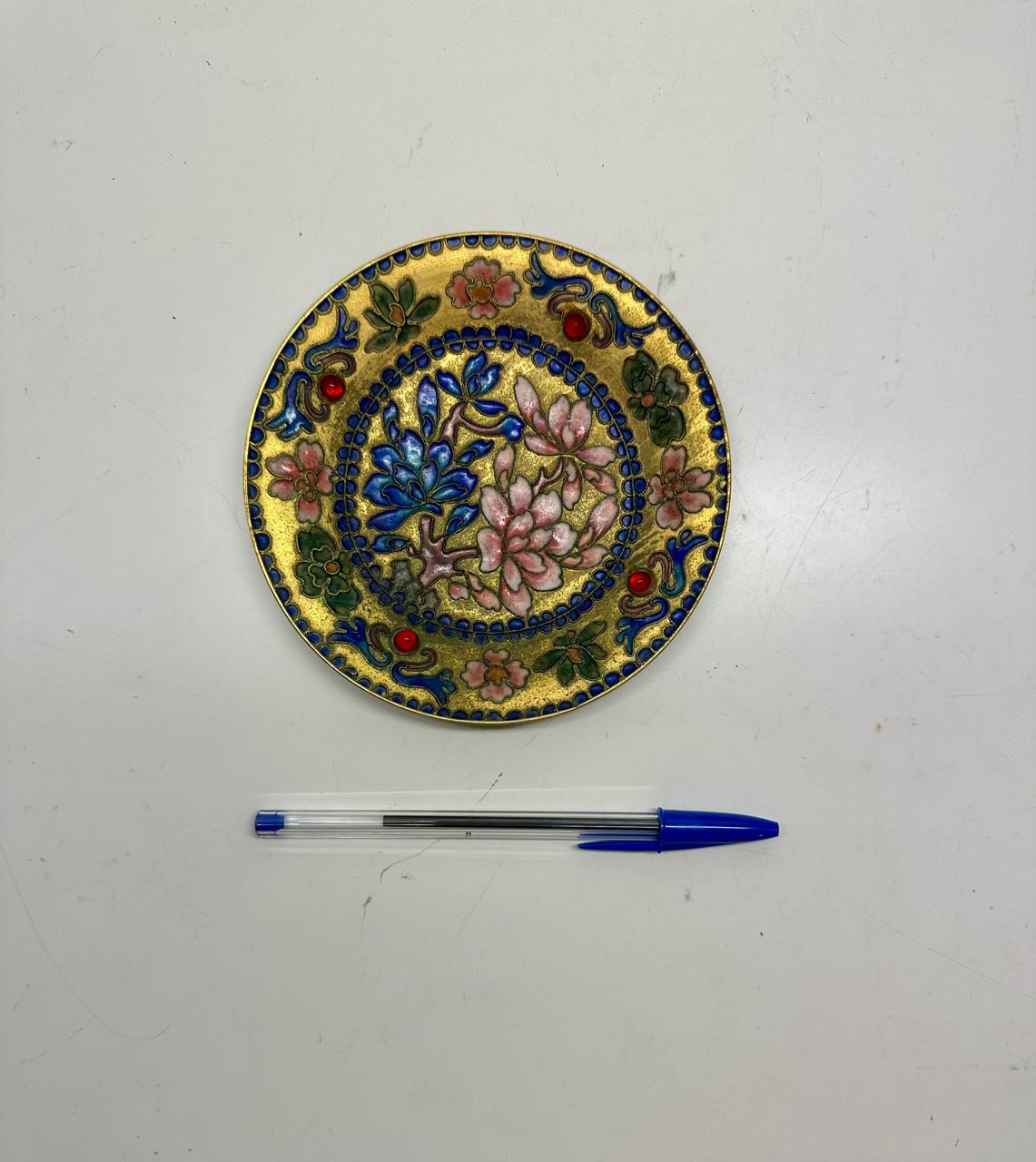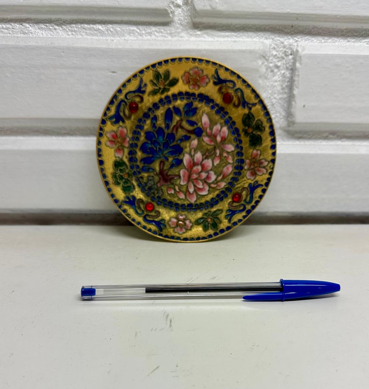 CONJUNTO COM 03 VASOS, 01 BOMBONIERE E UM PRATO CHINESES – ORIGINAIS – METAL ESMALTADO COM ALTO RELEVO E PINTURA