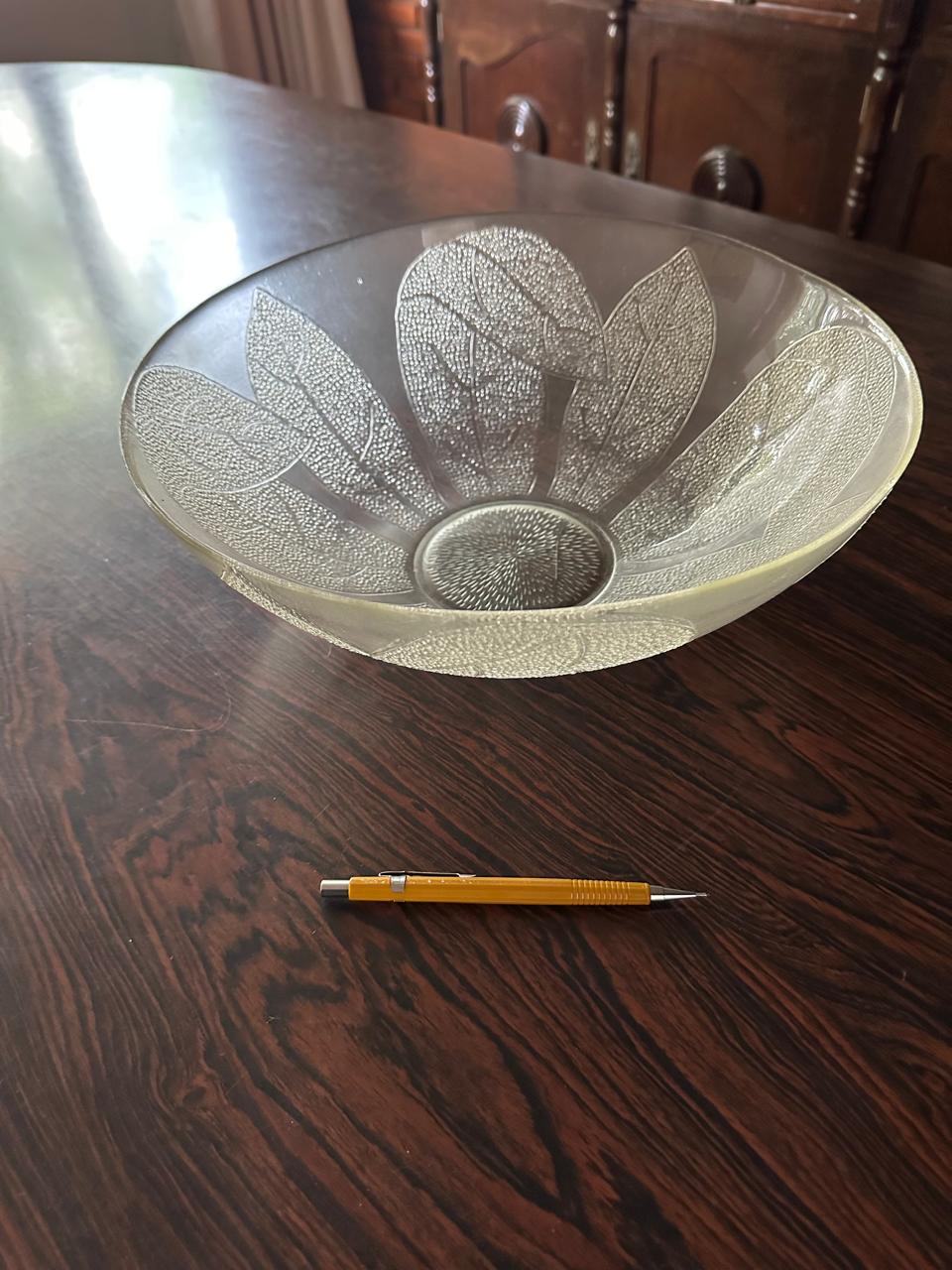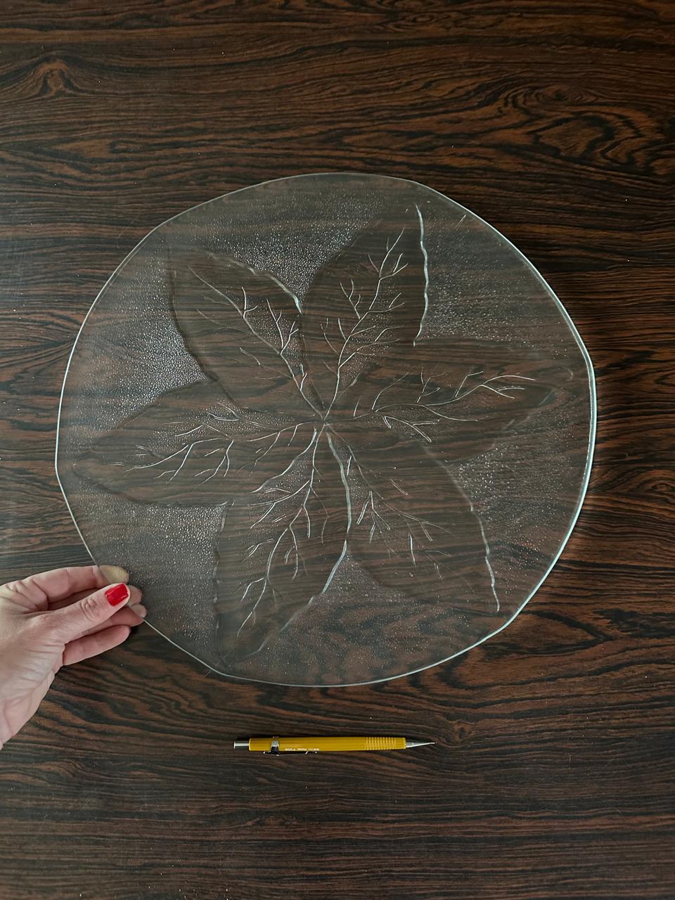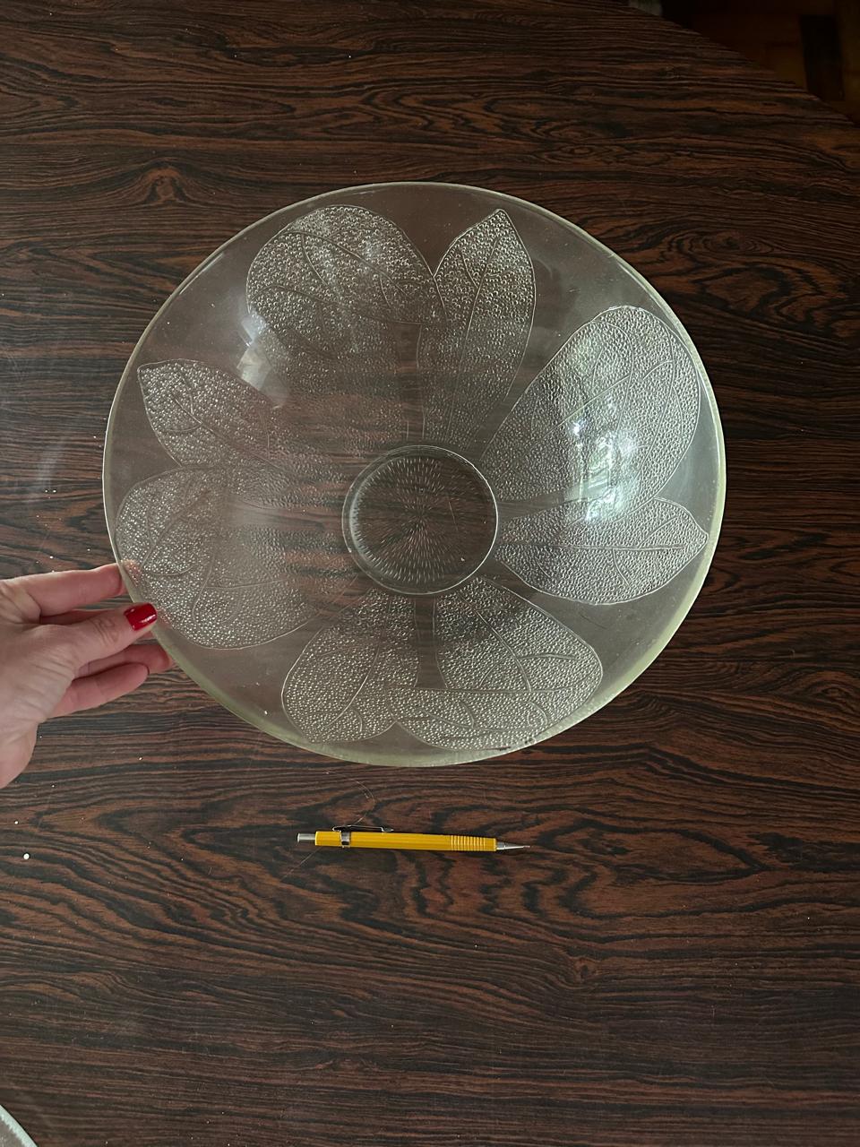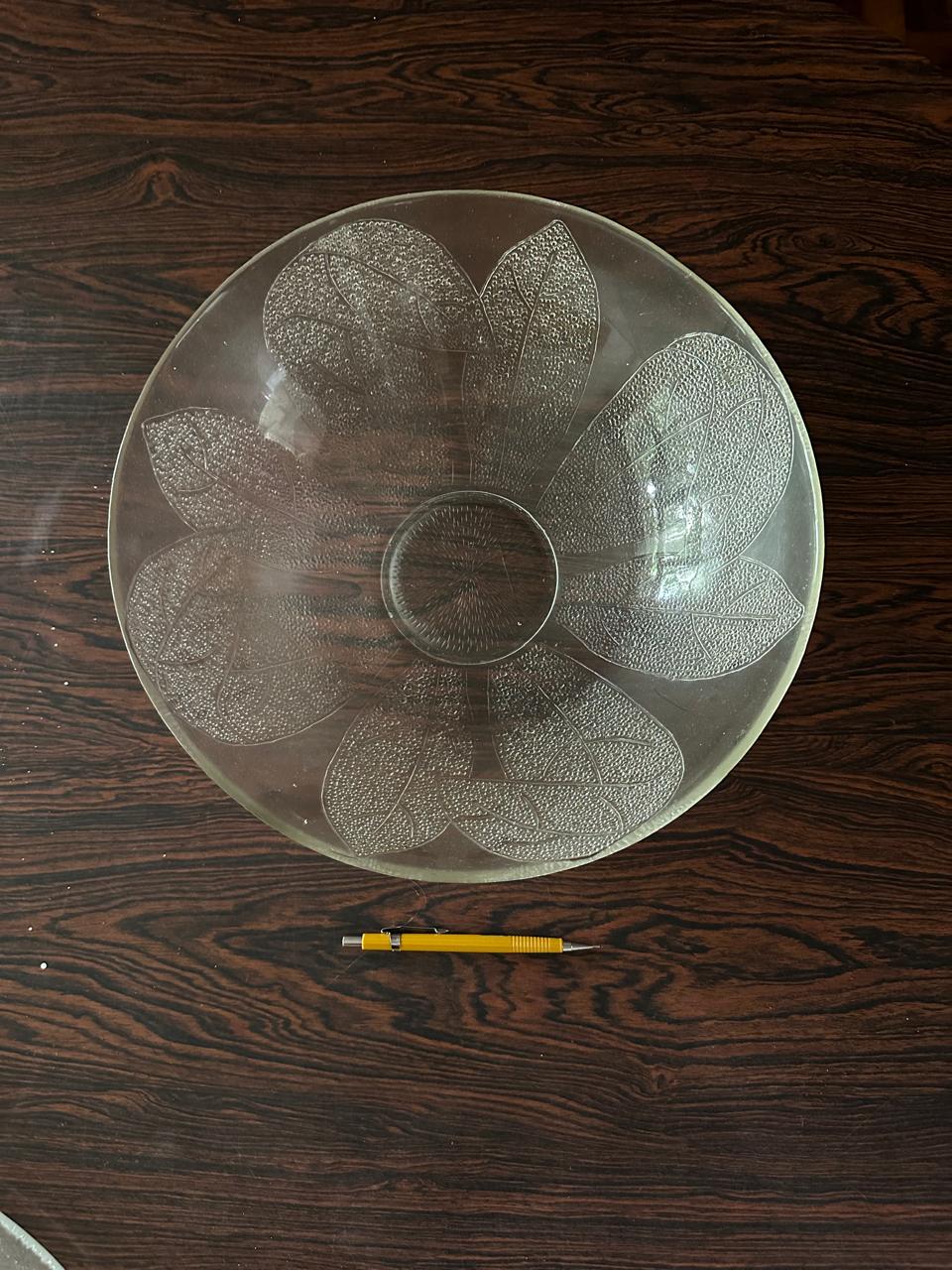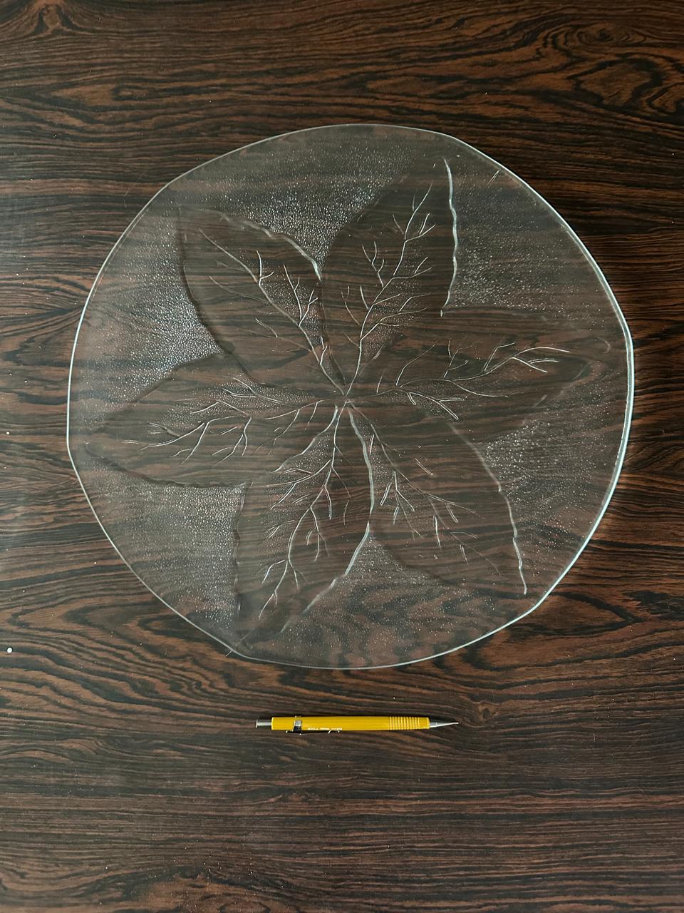 CONJUNTO DE 2 PRATOS GRANDES DE VIDRO COM MOTIVOS FLORAIS EM ALTO RELEVO — B045.208