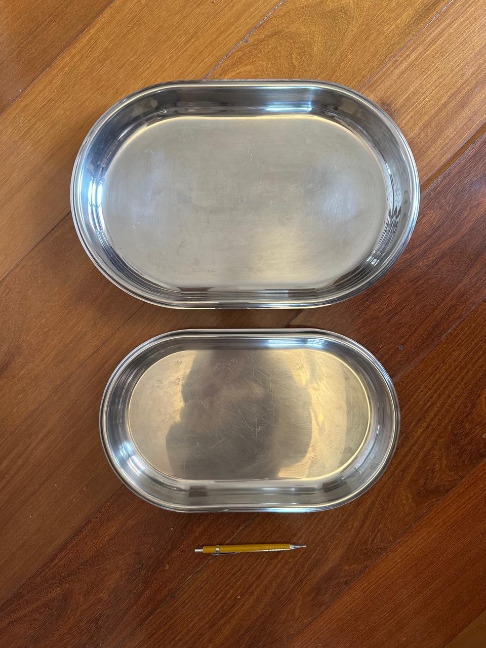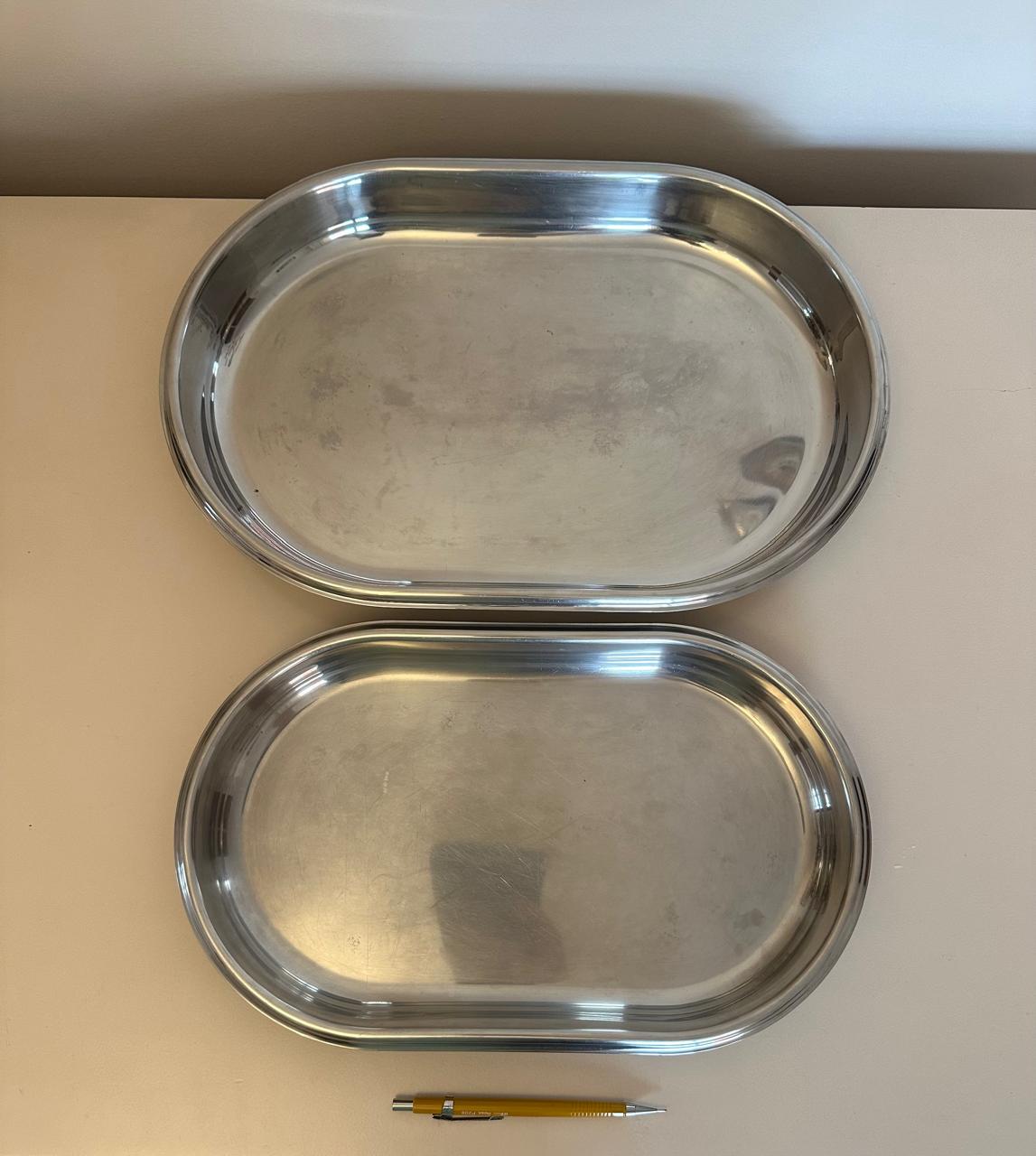 CONJUNTO DE 2 TRAVESSAS DE INOX – OVAL – PESADAS – ESTADO DE NOVAS — G043.103