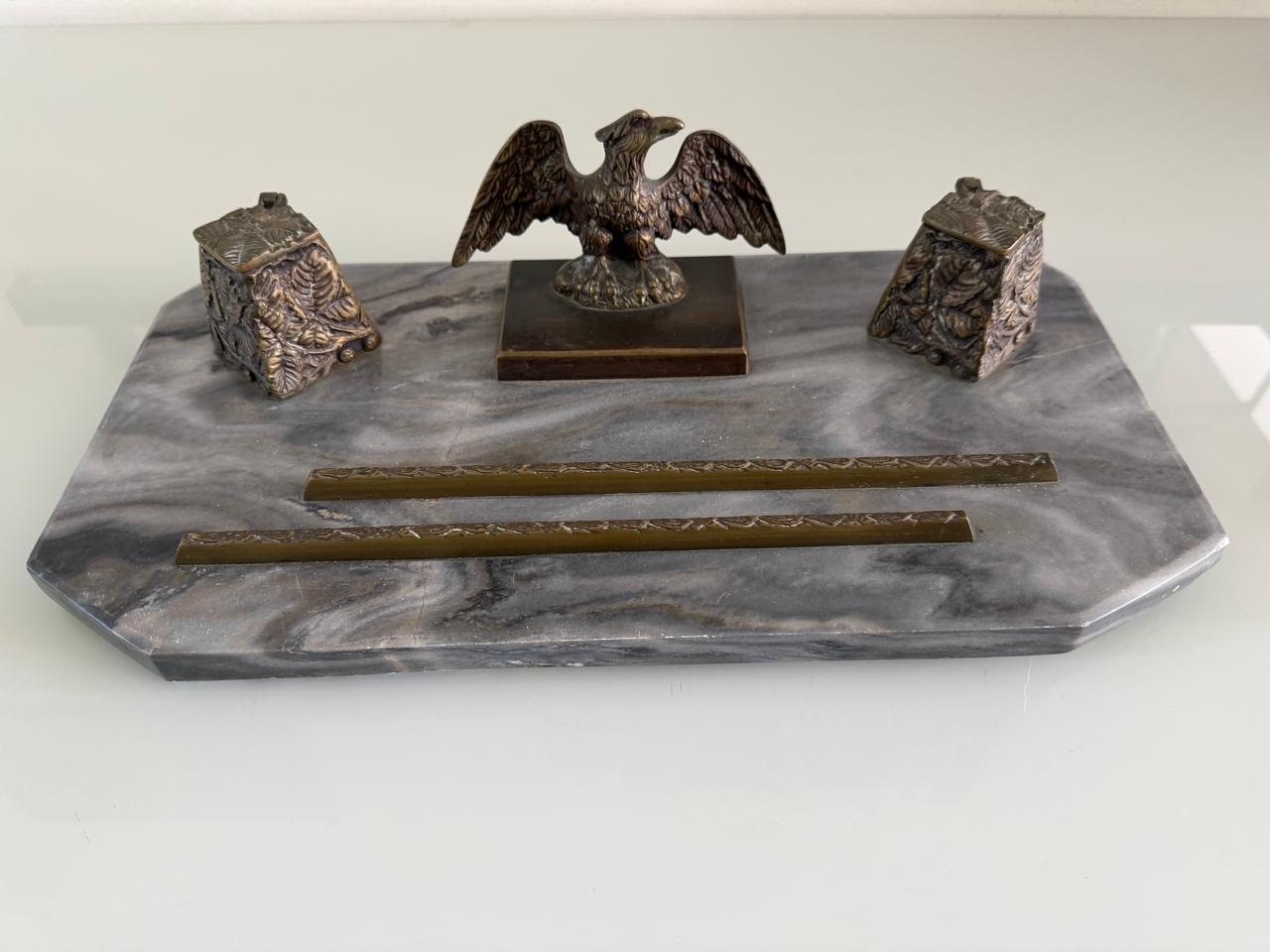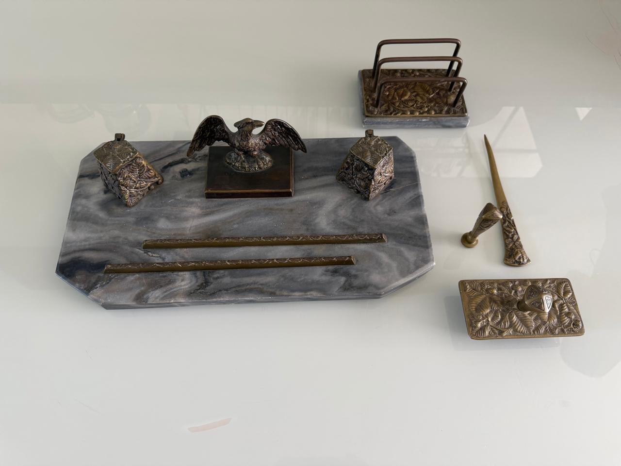 2 tinteiros, porta cartas, abridor de cartas, mata-borrão