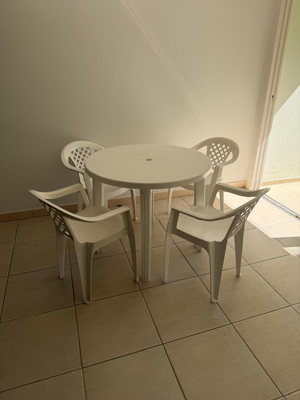 Mais conhecida como mesa e cadeiras de PVC