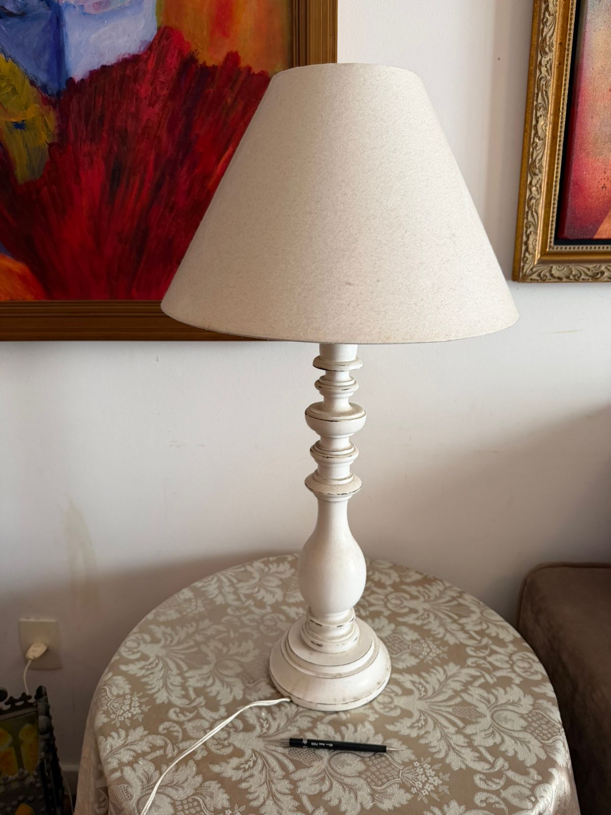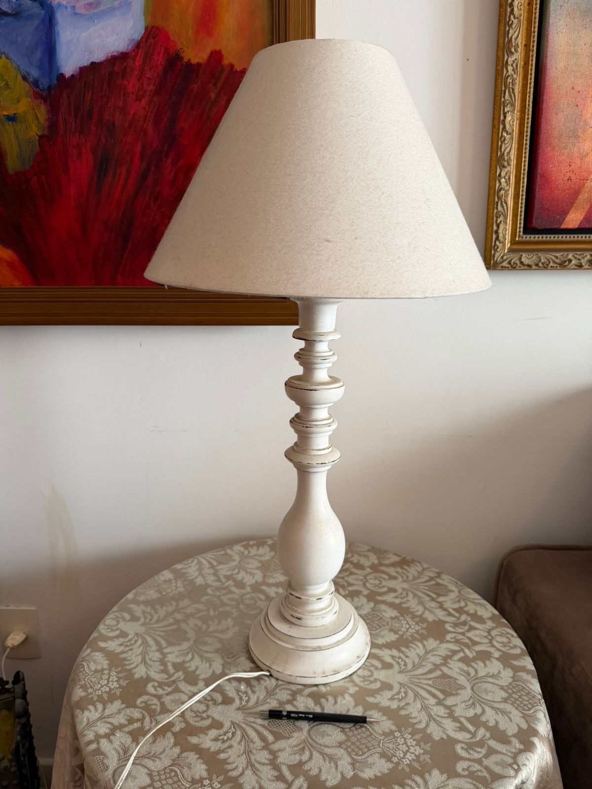 DOIS ABAJOURES – BASE EM MADEIRA PINTADA — J067.03