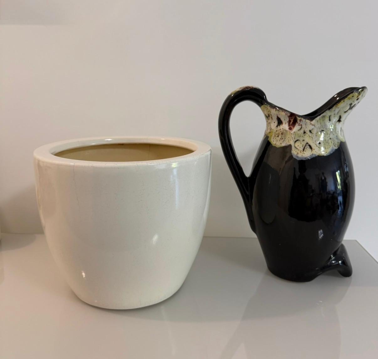 DUPLA FUNCIONAL – JARRA EM CERÂMICA ESMALTADA – ANTIGA + CACHEPOT — A135.07