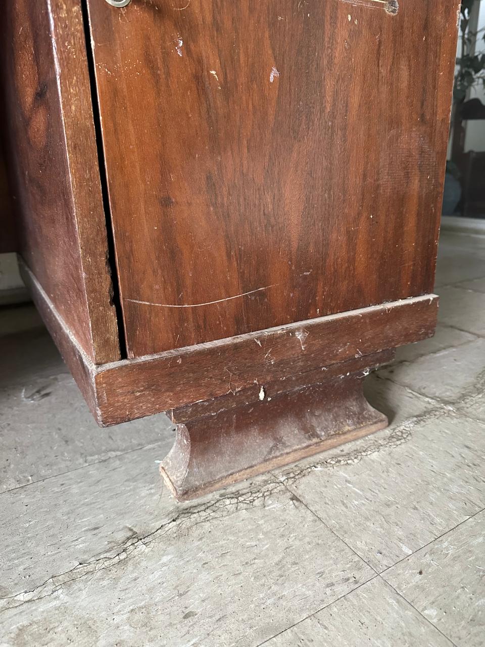 ESCRIVANINHA ANTIGA – MADEIRA – DUAS PORTINHAS LATERAIS COM GAVETAS INTERNAS + GAVETA CENTRAL – MARCAS DE USO E DO TEMPO – CHEIA DE HISTÓRIA — L085.02