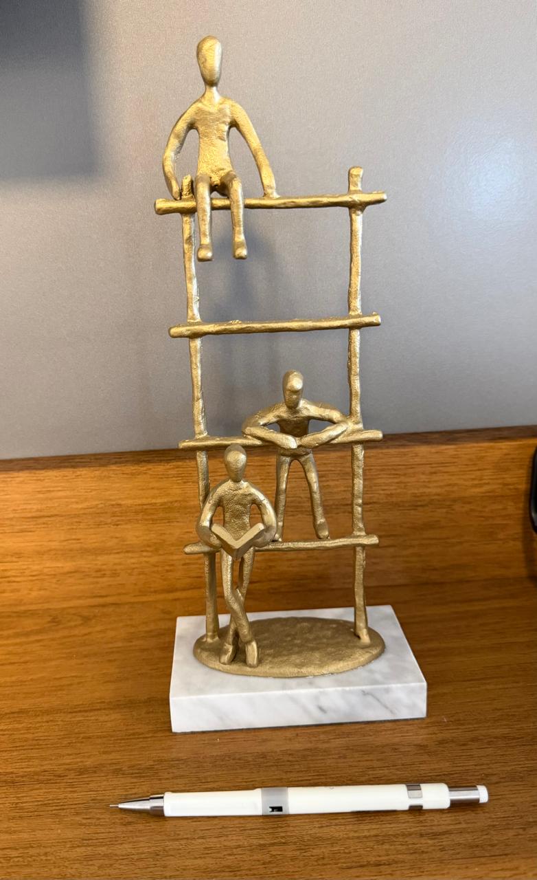ESCULTURA DE METAL – DOURADO FOSCO – BASE MÁRMORE — W008.25