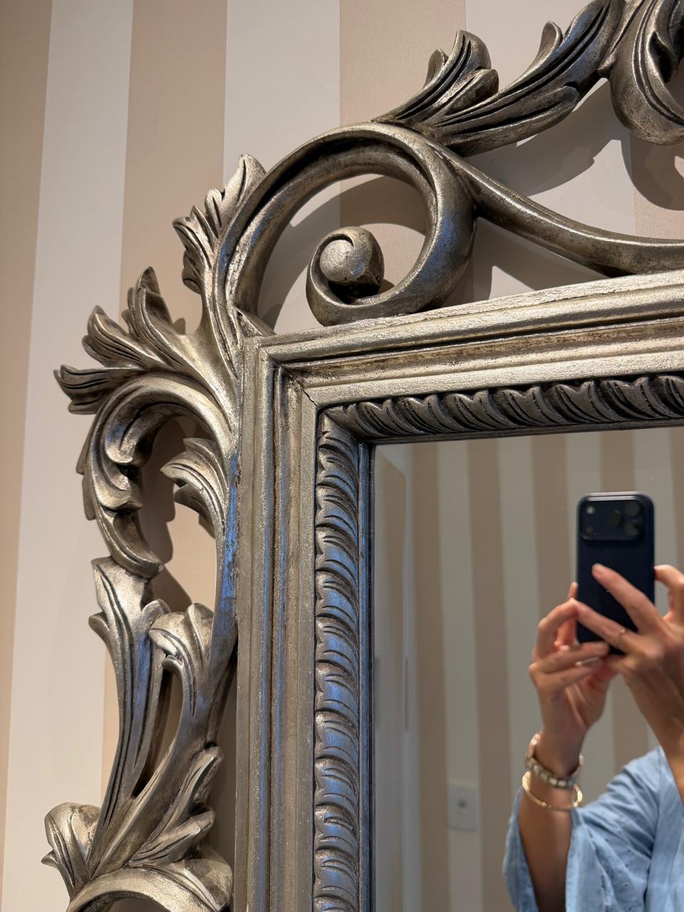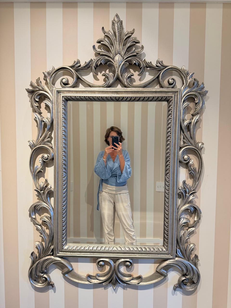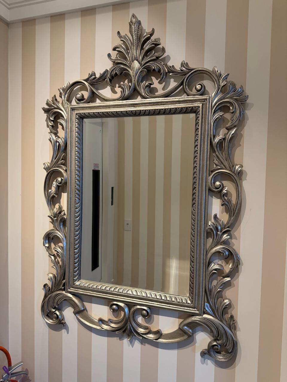 Seja o primeiro a avaliar “ESPELHO IMPONENTE – BISOTADO – MOLDURA CLÁSSICA – MADEIRA – PINTURA PRATEADA — R098.08”