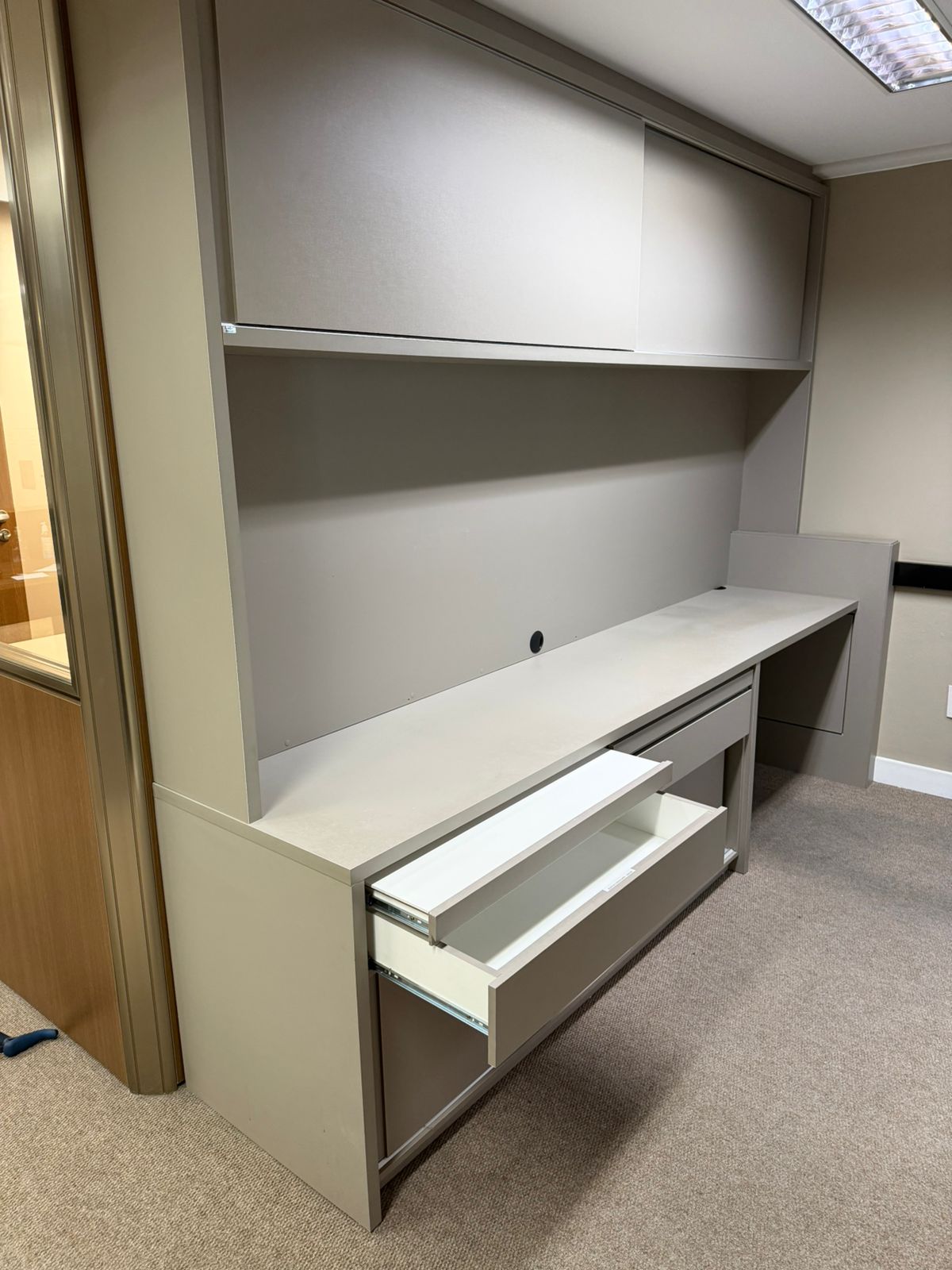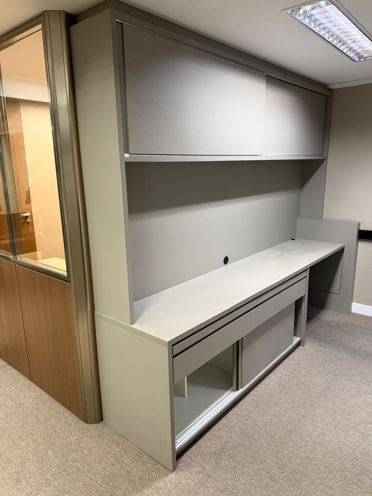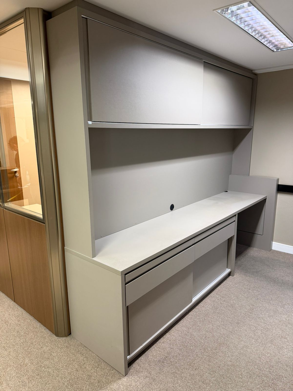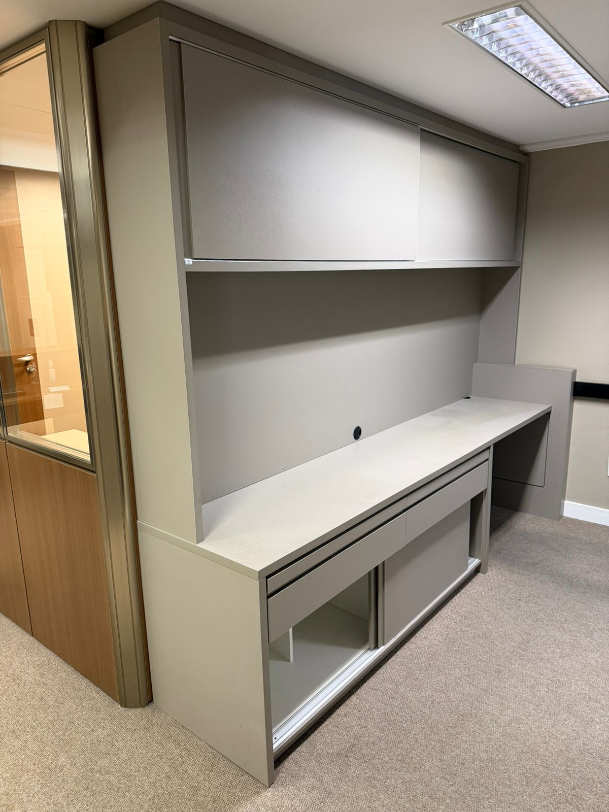 Excelente para quem precisa guardar coisas – livros, decorações e etc e ainda tem uma boa bancada para trabalhar