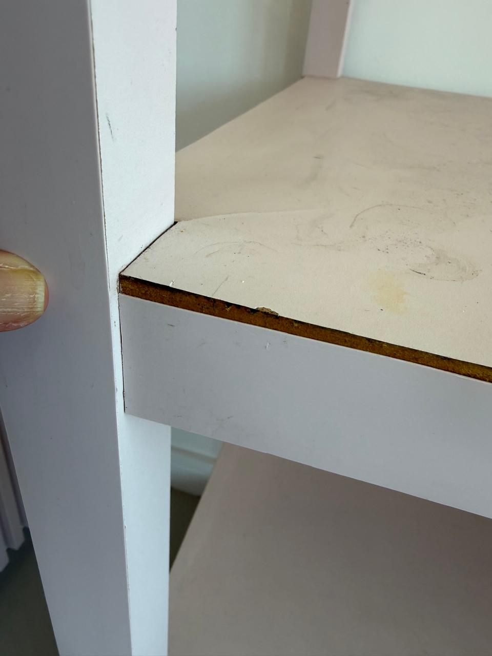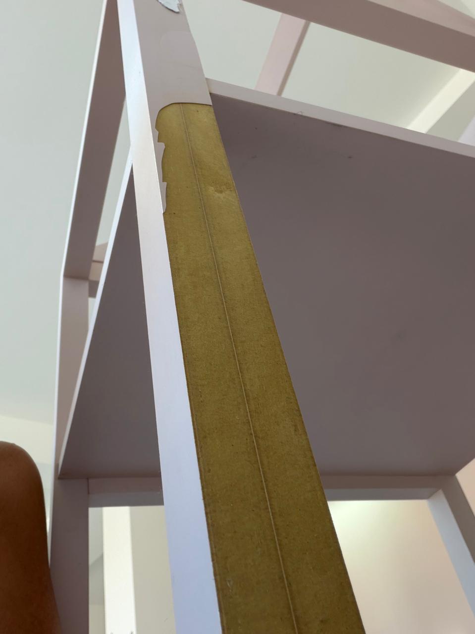 Na parte de trás uma lâmina de fórmica descolou, destacamos na foto