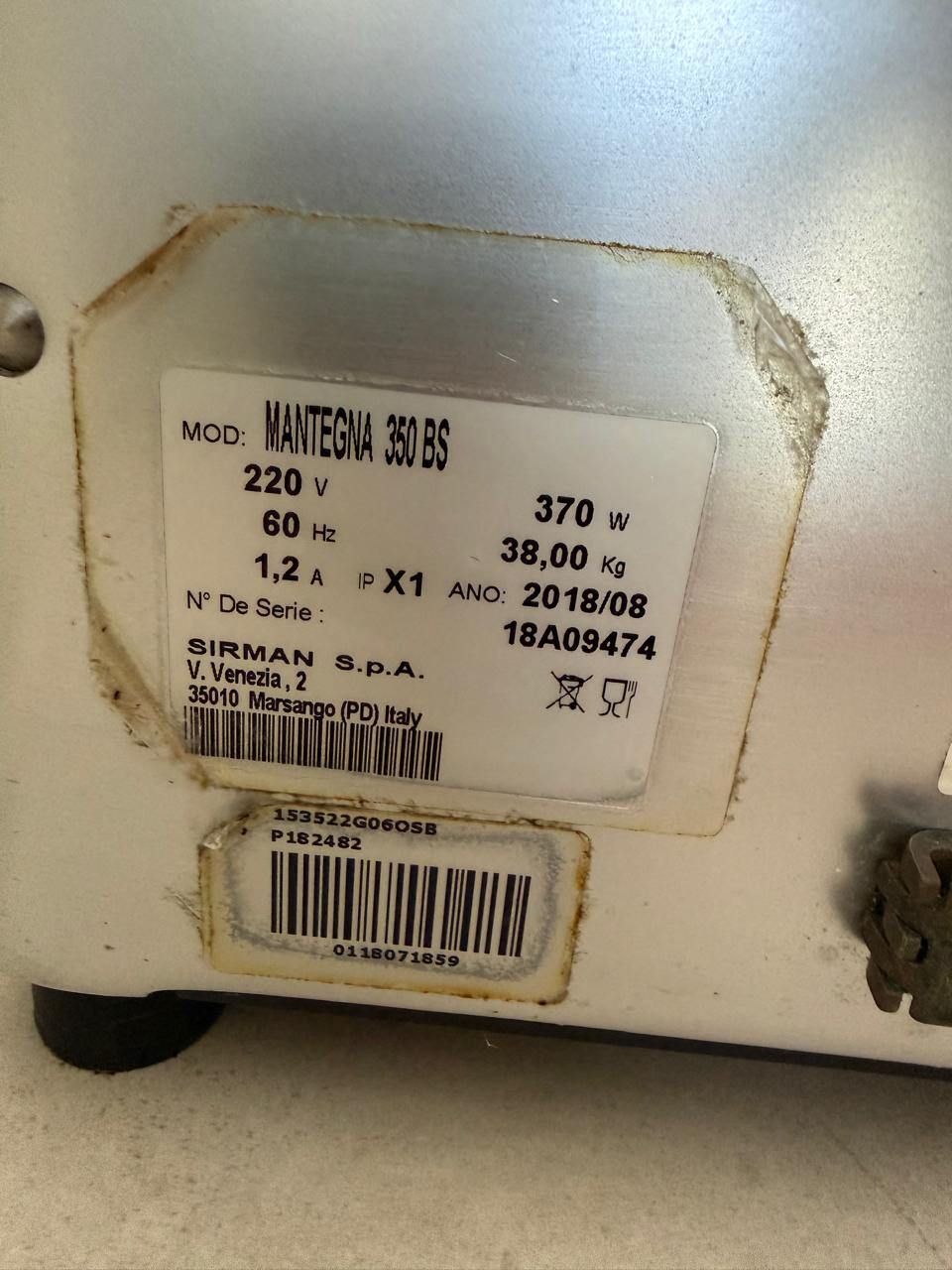 FATIADORA INDUSTRIAL SIRMAN – ITALIANA – PARA FRIOS E CARNES – ANO 2018 – MODELO MANTEGNA 350 DS — Y004.01