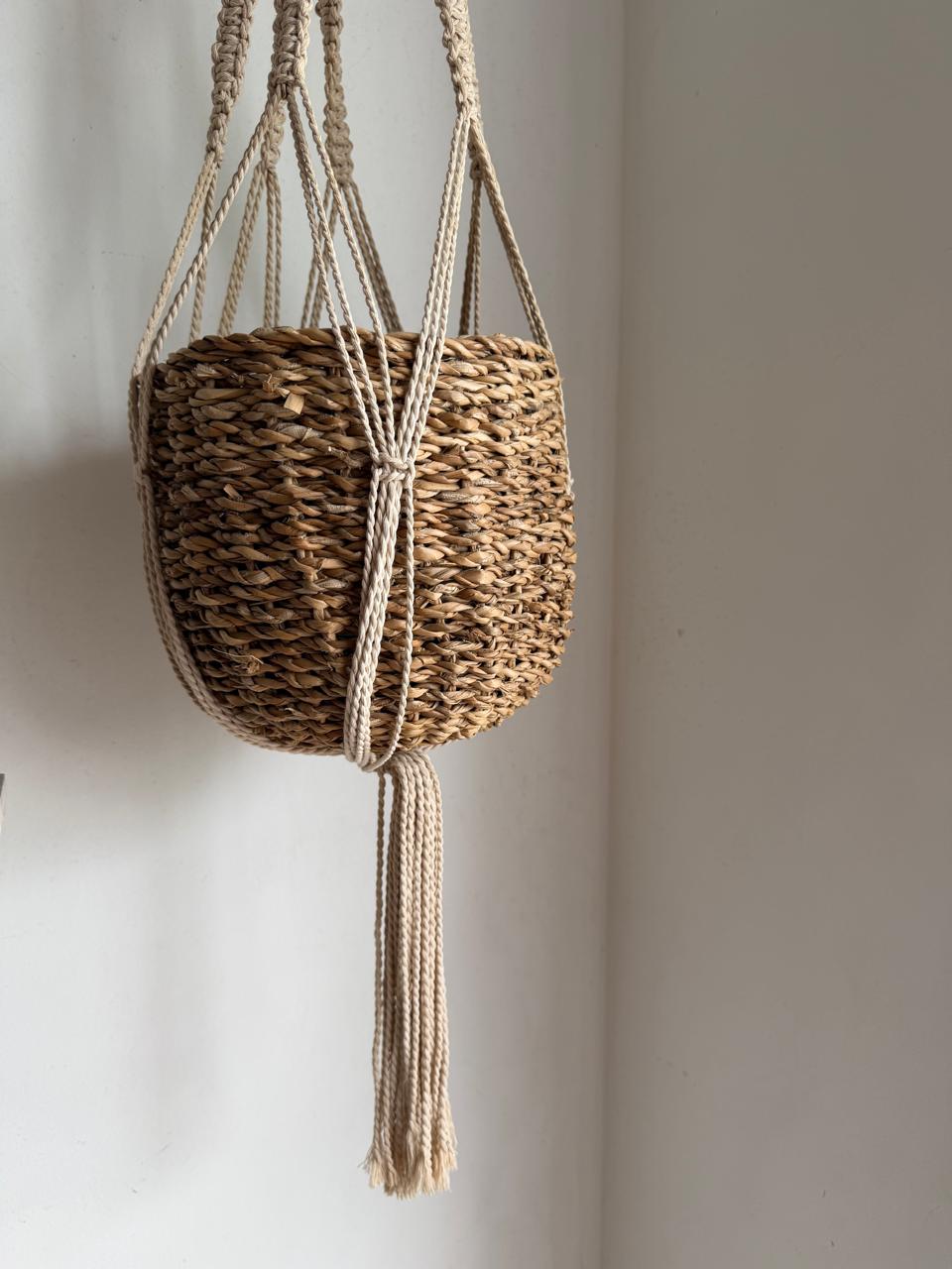 FLOREIRA MACRAMÊ + CESTO PALHA — A133.07