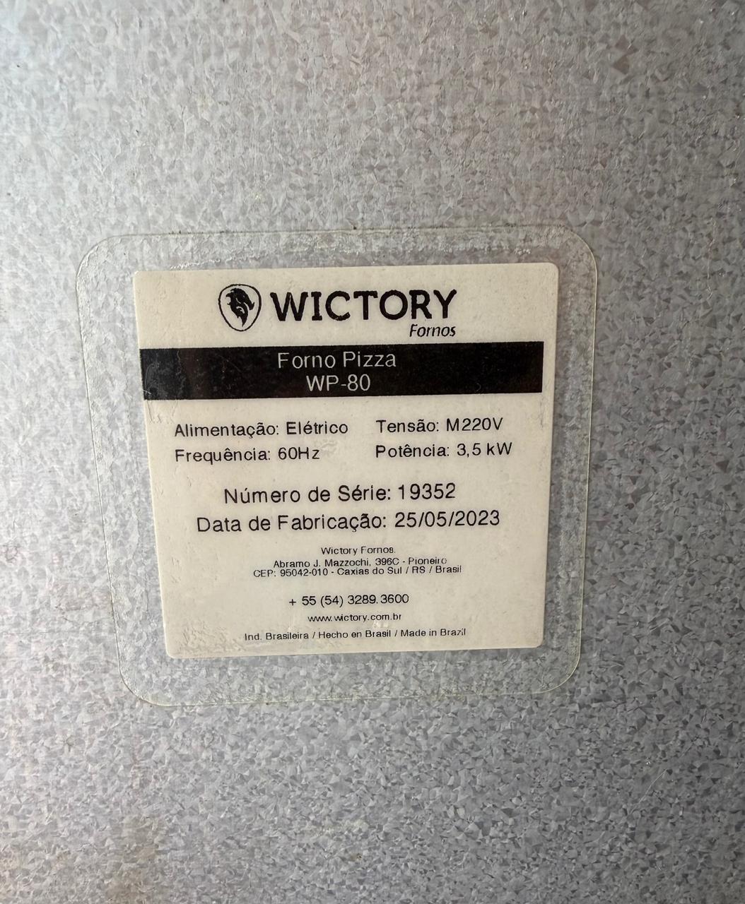 FORNO DE LASTRO WICTORY – ELÉTRICO – MONOFÁSICO – BANCADA INOX – ACESSÓRIOS – ANO 2023 — R095.30