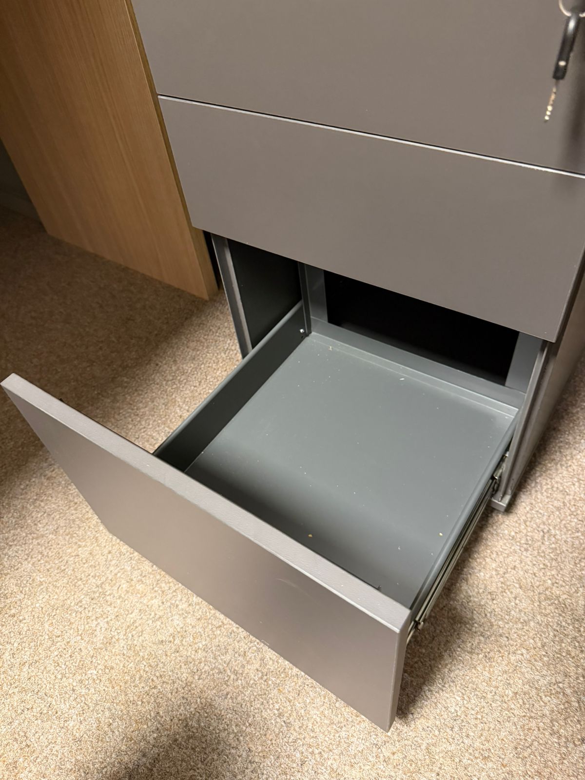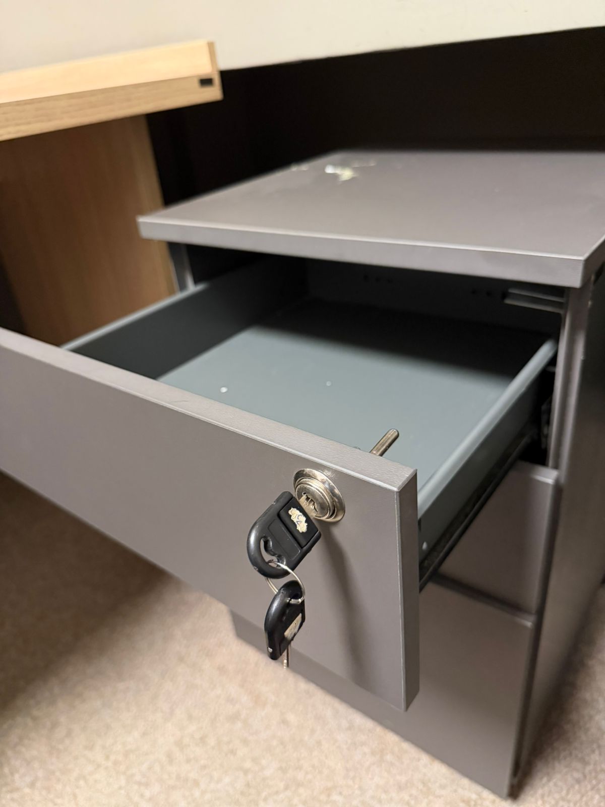 A estrutura da gaveta é metálica