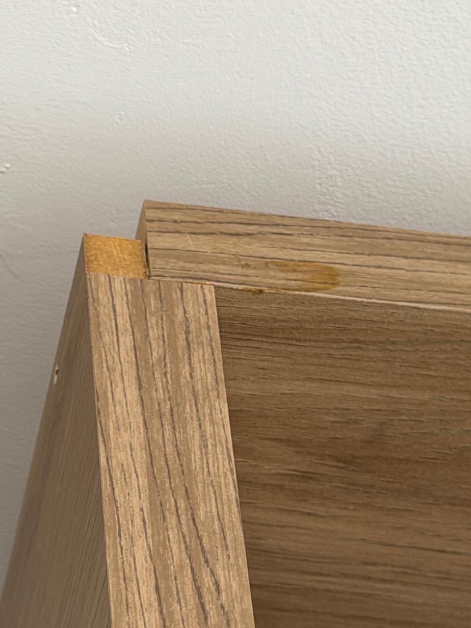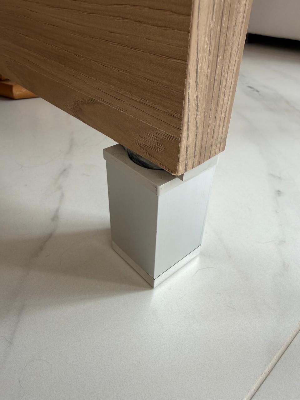 Dá para reparar nas fotos dos detalhes que a escrivaninha tem um pézinho diferente