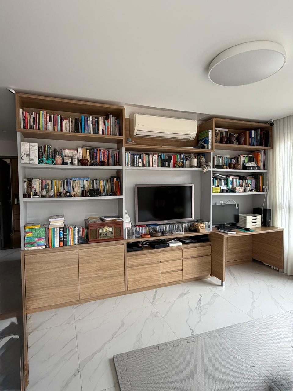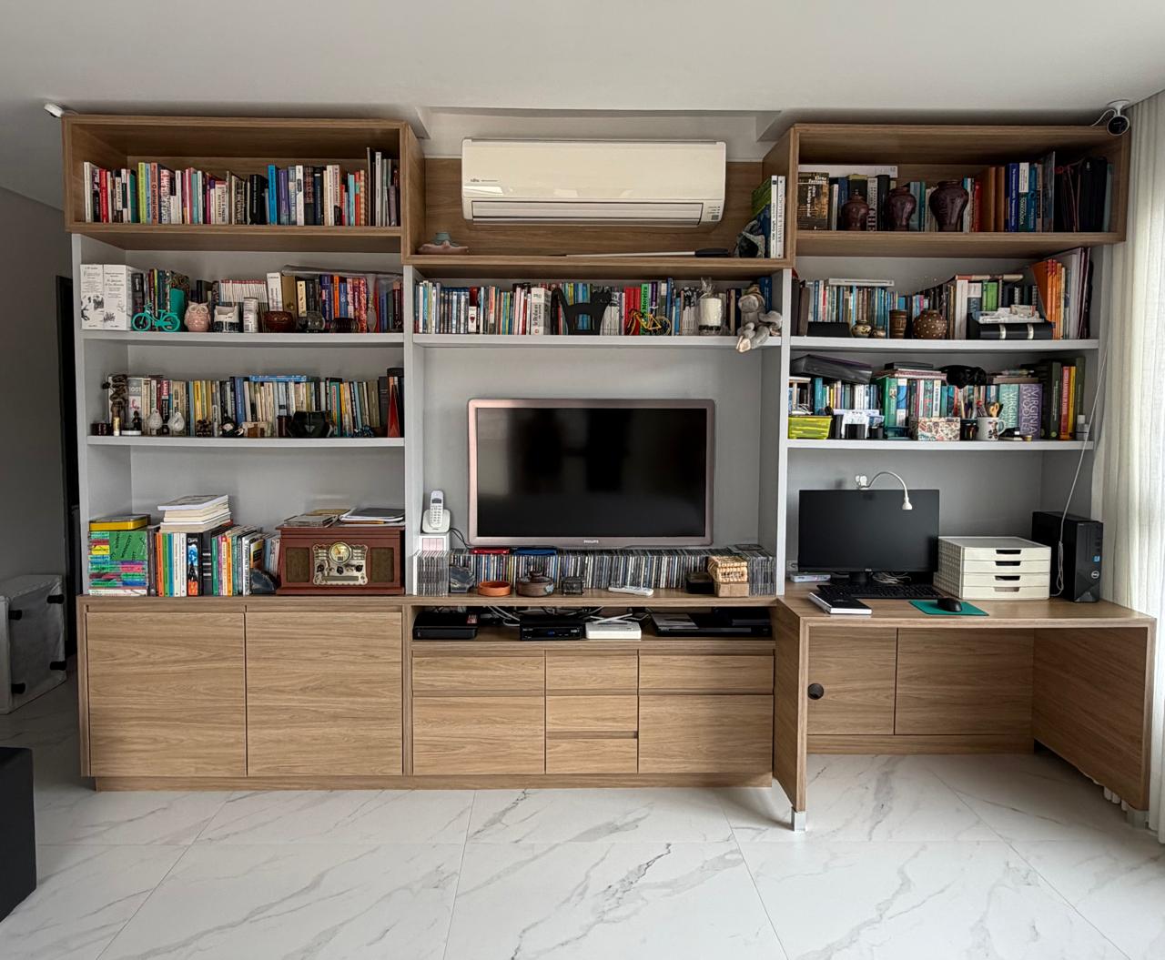 Seja o primeiro a avaliar “GRANDE ESTANTE DE SALA – MDF – COM BANCADA ESCRIVANINHA À DIREITA + ARMARINHOS + GAVETAS + NICHO PARA TV — D010.302” Cancelar resposta