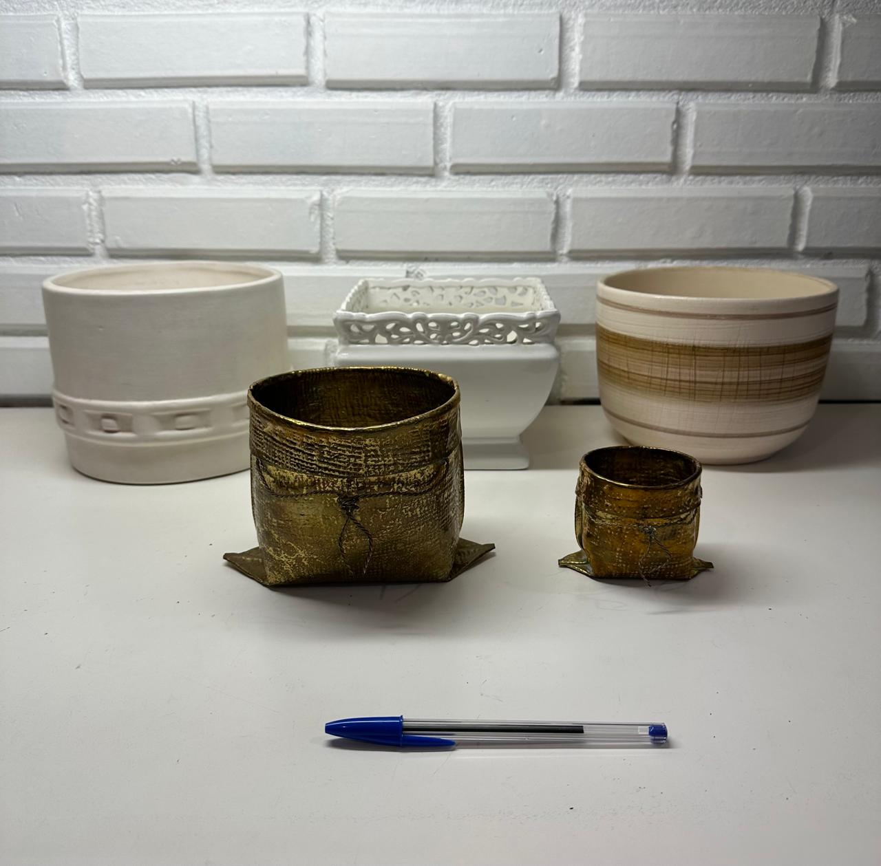 JOGO DE CACHEPÔ – CERÂMICA E LATÃO
