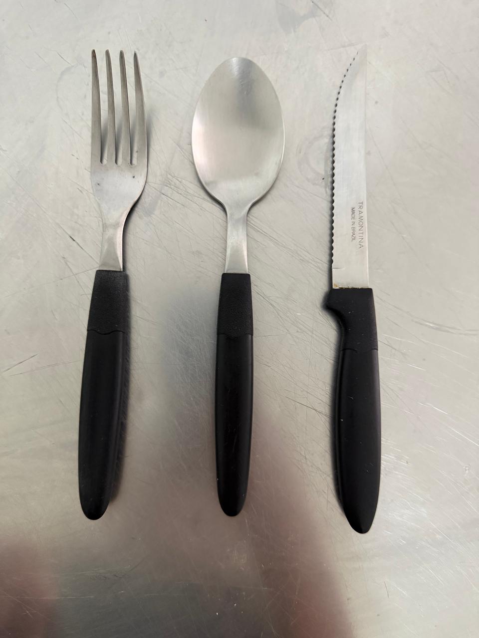 KIT TALHERES – GARFO + FACA + COLHER – TRAMONTINA – CABOS PLÁSTICOS — J070.17