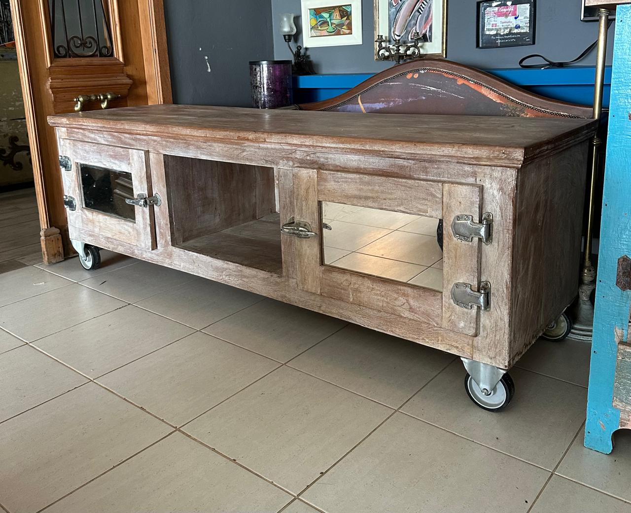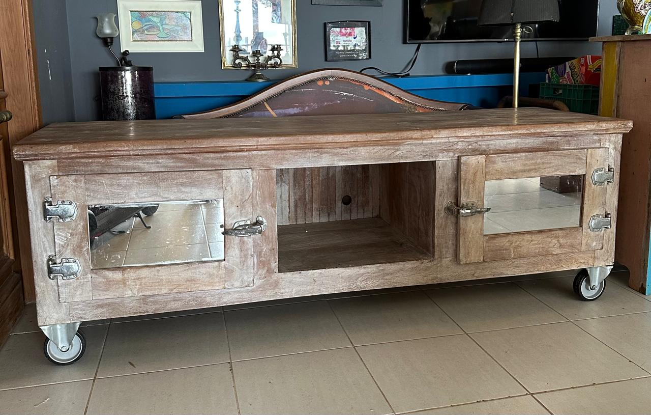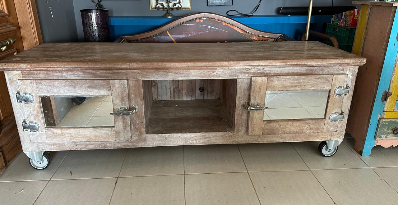 LINDO ! RACK MADEIRA PESADA – PEROBA – PORTAS LATERAIS COM ESPELHO – FECHADURA FEITA COM DOBRADIÇAS DE GELADEIRAS INDUSTRIAIS – RACK PROFUNDO – RODÍZIO ROBUSTO PARA CARGA PESADA – PARA SALA DE ESTAR, TV OU MESMO HOME HFFICE E QUARTO — F067.10