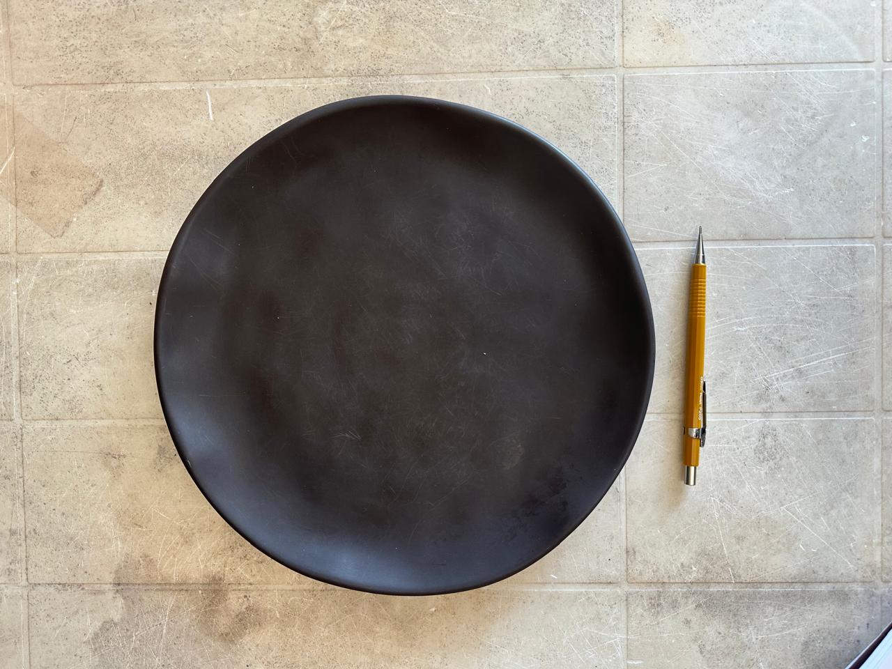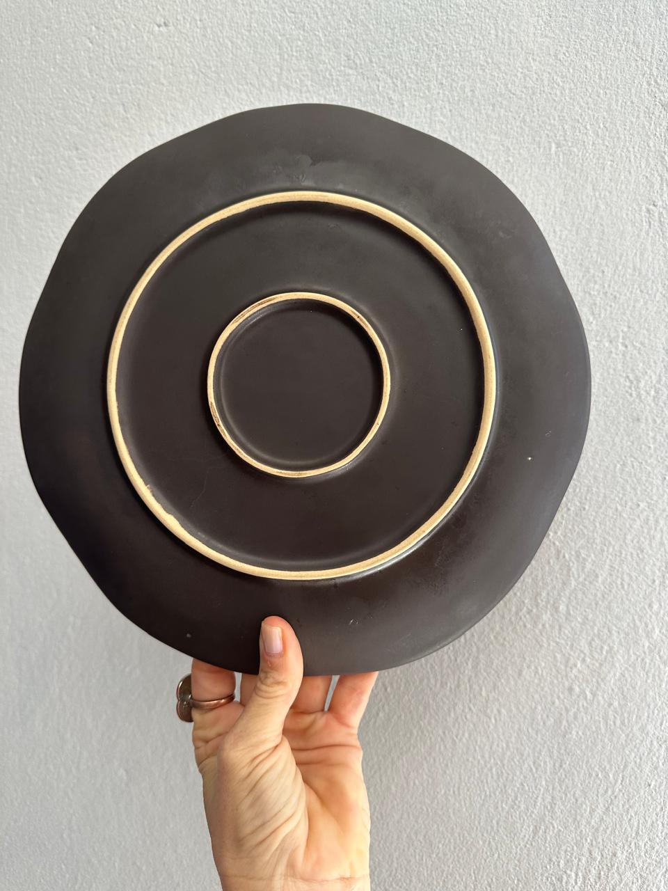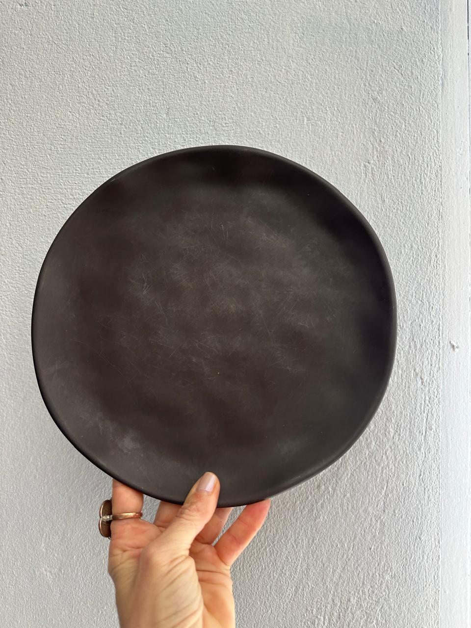 LOTE DE PRATOS RASOS – CERÂMICA – PRETOS – RÚSTICOS – BEM ATUAIS – ORGÂNICOS – SÃO 115 PEÇAS NO TOTAL — F066.22