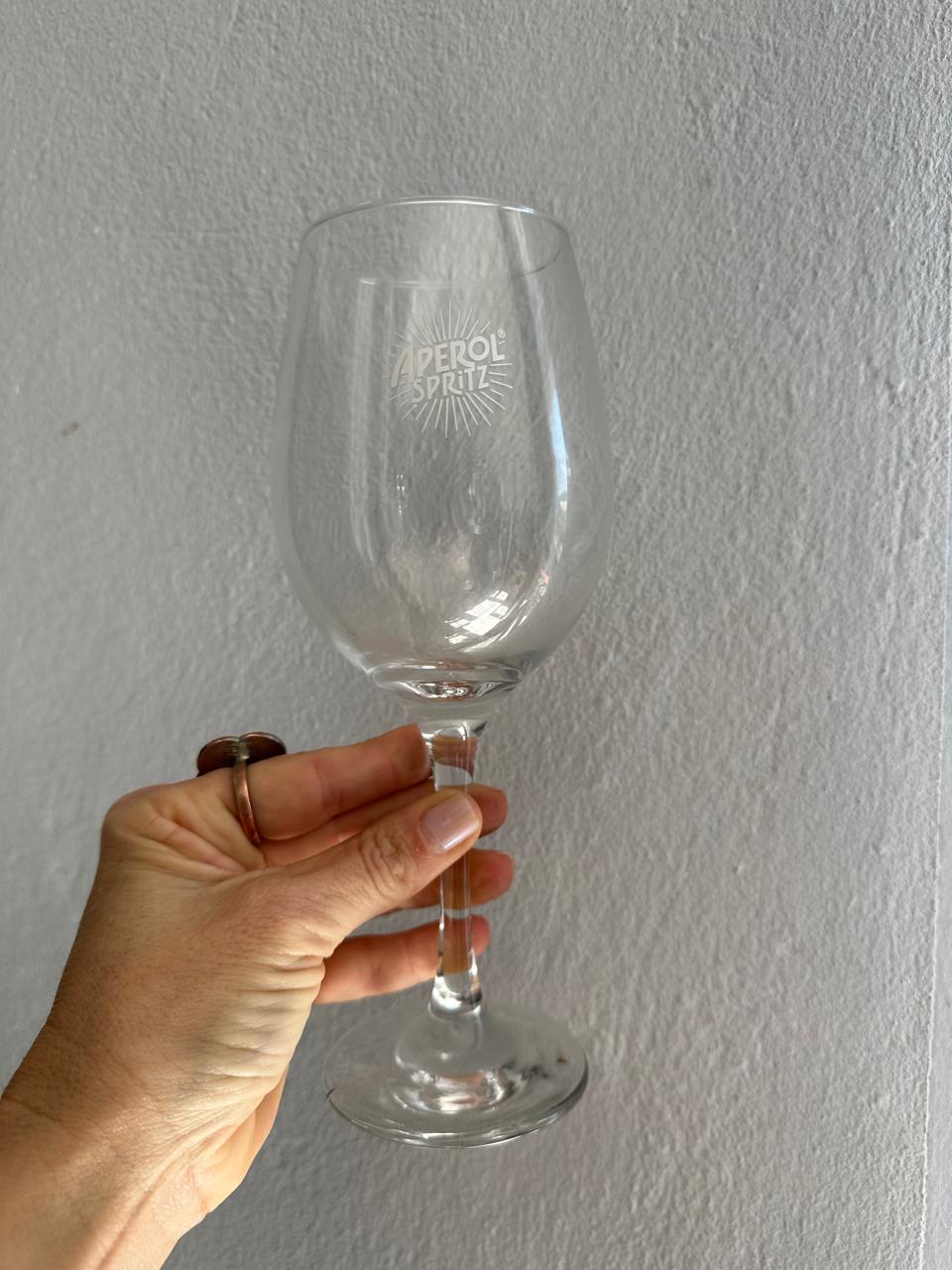 LOTE DE TAÇAS APEROL – LOGO PEQUENA E PÉ RETO – VIDRO – NOVOS – TEMOS 2 LOTES DE 10 UND CADA — F066.32